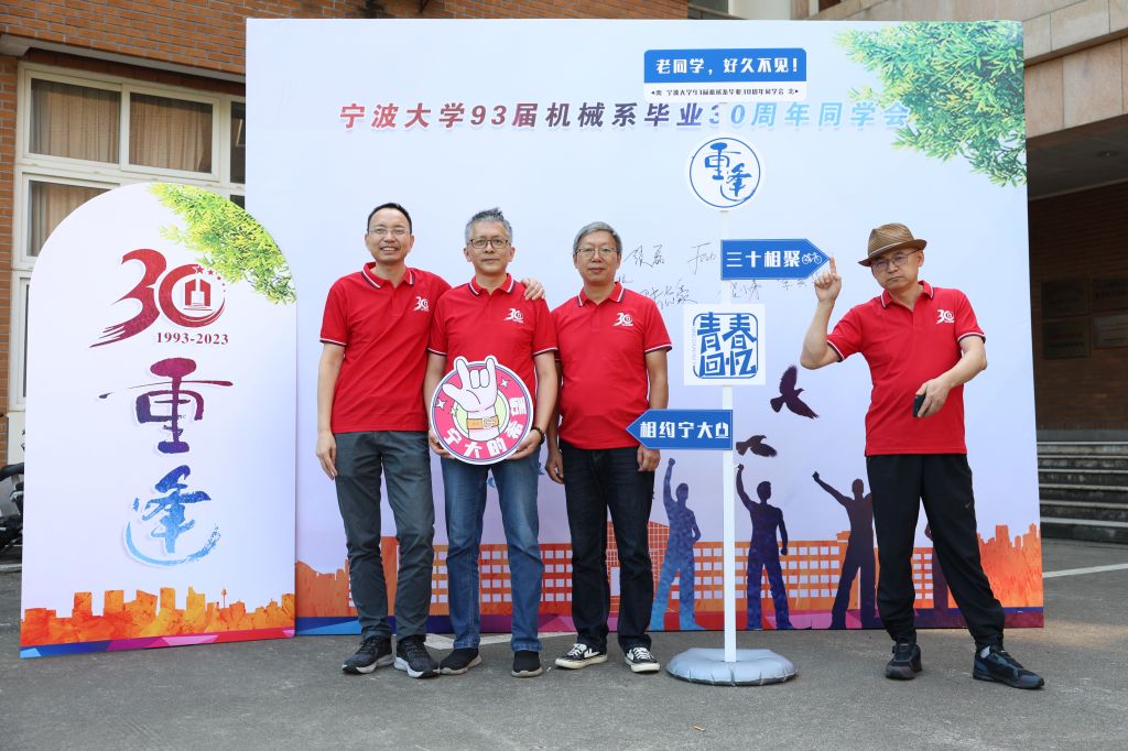 绣山工程楼前汇合,互相寒暄家长里短,领取了自己那份30周年小礼物,在大大的签名墙上与分别多年的昔日同窗签下了自己的名字。“最棒的班!”30周年第一张合影时,他们喊出的话语透露着的是他们激动的心情,是30年依旧不变的宁大学子的自豪感。