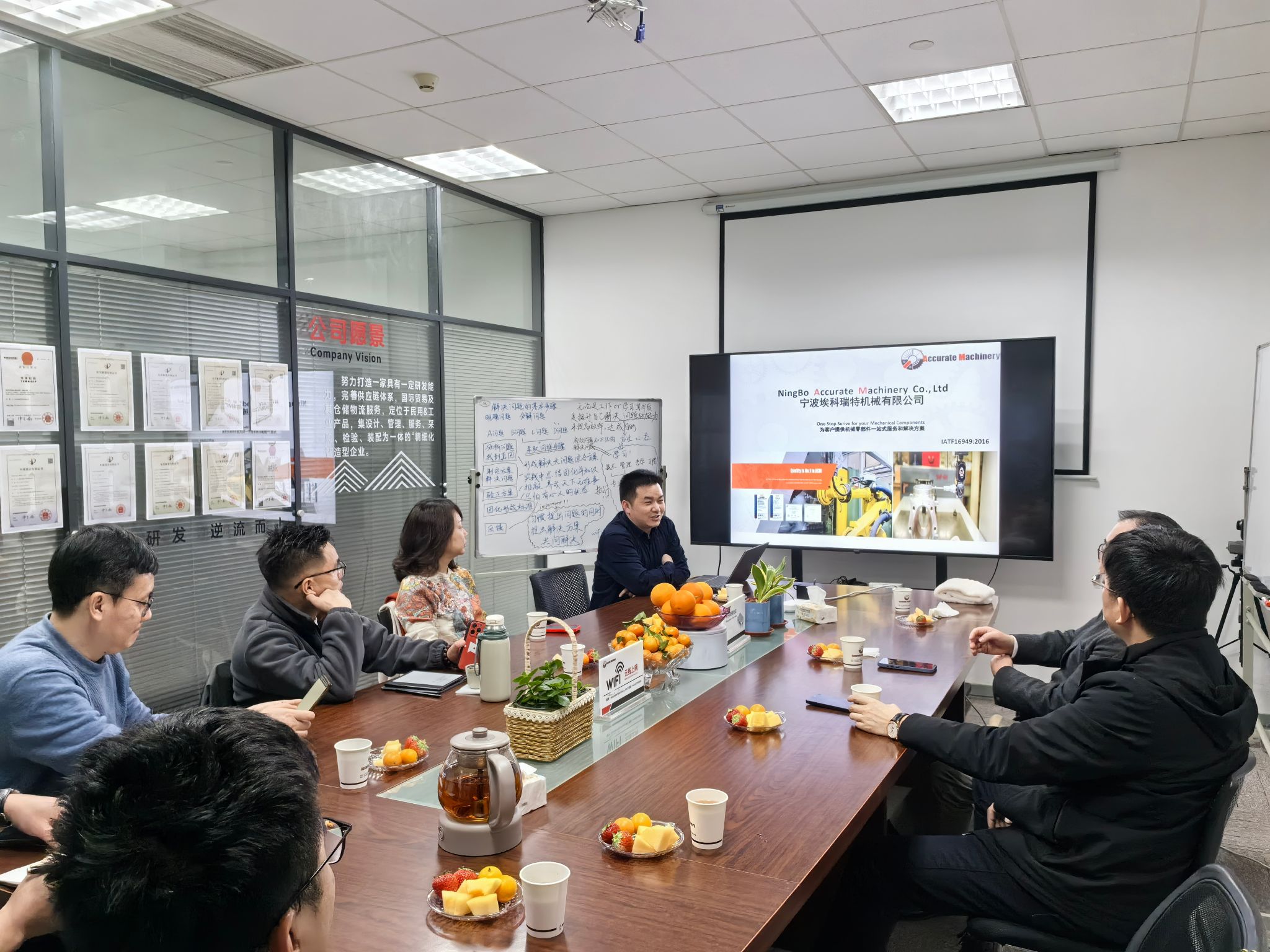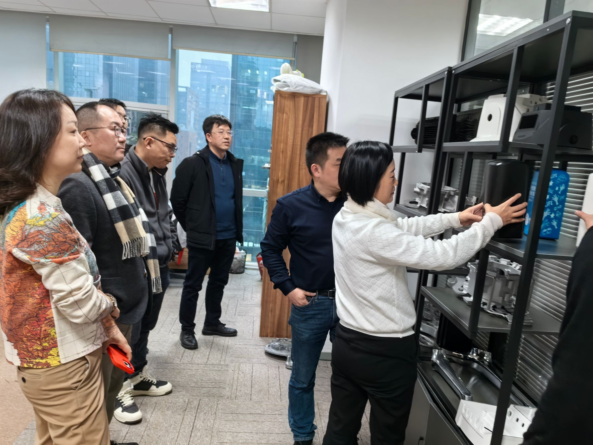 党委副书记沈妍伶等十余位校友走进了2001级机械设计制造及其自动化专业校友陈胜的宁波埃科瑞特有限公司。
