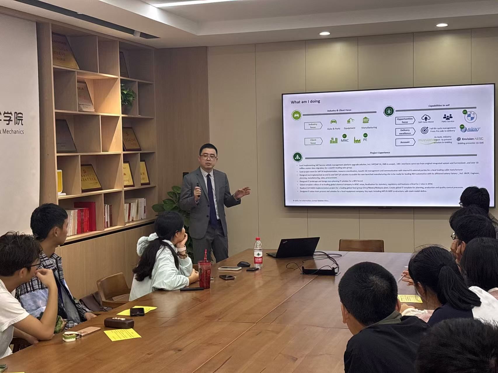 在分享过程中,徐轶校友还勉励同学们认真学习,不断提升自己的综合素质。他提到,在职场中,持续学习和不断进步是取得成功的关键。他鼓励同学们要勇于尝试新事物,敢于挑战自我,不断拓宽自己的视野和格局。