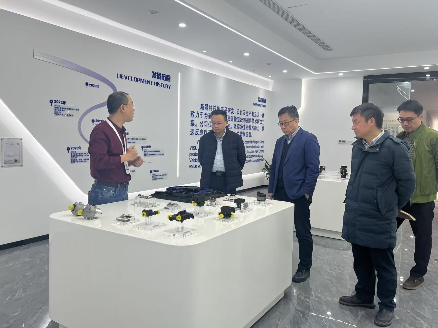 威晟汽车科技(宁波)有限公司长期专注于汽车动力系统核心零部件研发制造,与国内多家知名车企如小鹏、比亚迪等建立稳定合作关系,产品出口至美国、韩国、日本等多个国家,入选宁波市"专精特新"企业名录。在吴乐祥校友的介绍下,与会校友实地观摩了企业智能化生产线,详细了解了生产工艺与研发体系。