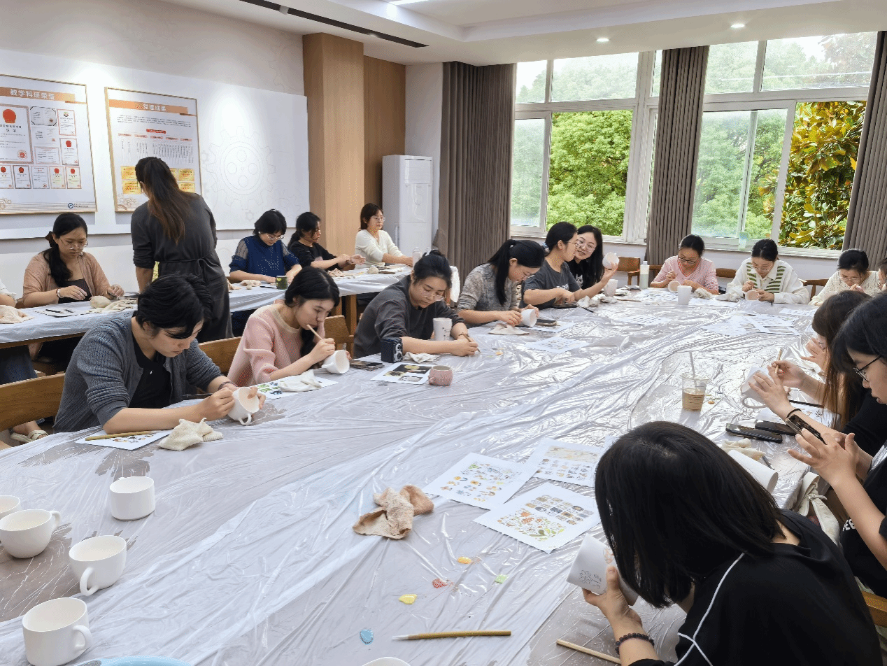 活动当天,现场气氛热烈而欢快。陶艺老师向大家详细介绍了陶土的特性、制作方法及绘制注意事项。随后,老师们纷纷动手尝试,他们揉、捏、搓、切、画,精心打造着自己心目中的清廉作品。陶土在他们灵巧的手上逐渐变成了造型各异的陶艺品,每一件作品都蕴含着老师们对清廉的深刻理解和美好祝愿。