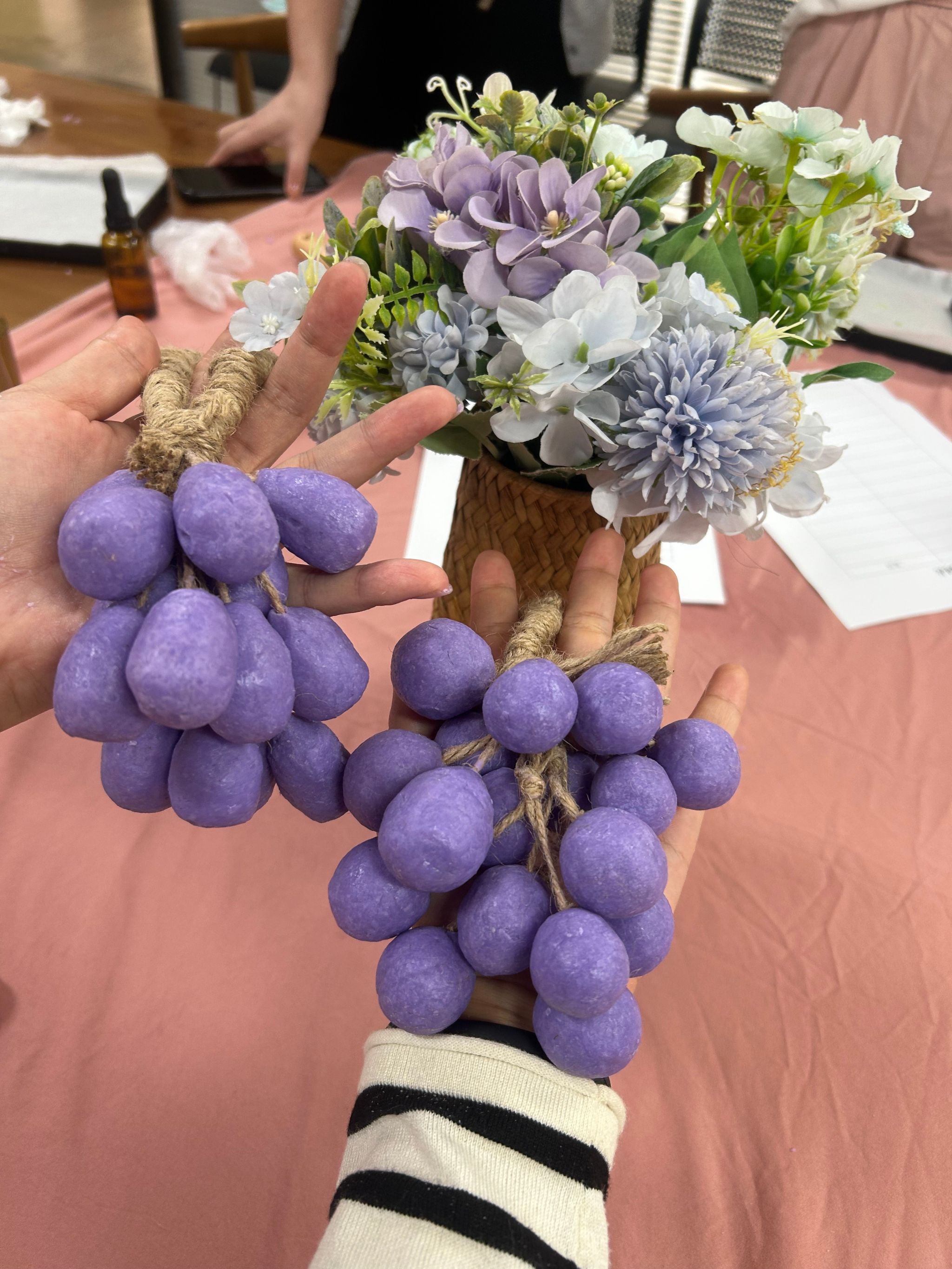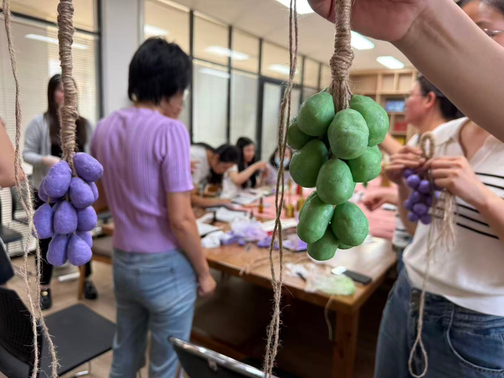 活动伊始,参加活动的教职工签到并领取专属材料包,现场陈列的天然皂基、植物精油等原料迅速点燃了大家的创作热情。在简短的安全说明后,手工老师通过对比手工皂与工业皂的差异,深入浅出地讲解了葡萄成分的抗氧化与保湿功效,强调天然制品对健康与环境的双重意义。