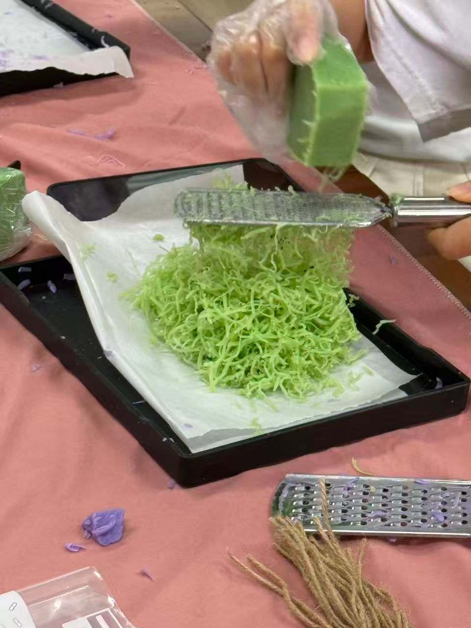 自由创作时段,大家化身“生活艺术家”,在老师的巡回指导下尝试肥皂制作,并依据个人喜好调配独特香气。从简约素雅的纯色皂到层次丰富的创意造型,每一件作品都承载着对自然生活的向往。现场气氛热烈,空气中弥漫着精油清香与欢声笑语。