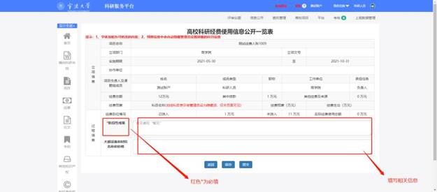 3.科研人员若在截止日期后未能完成填报,项目经费使用信息不会公开,一切后果由项目负责人自负。
