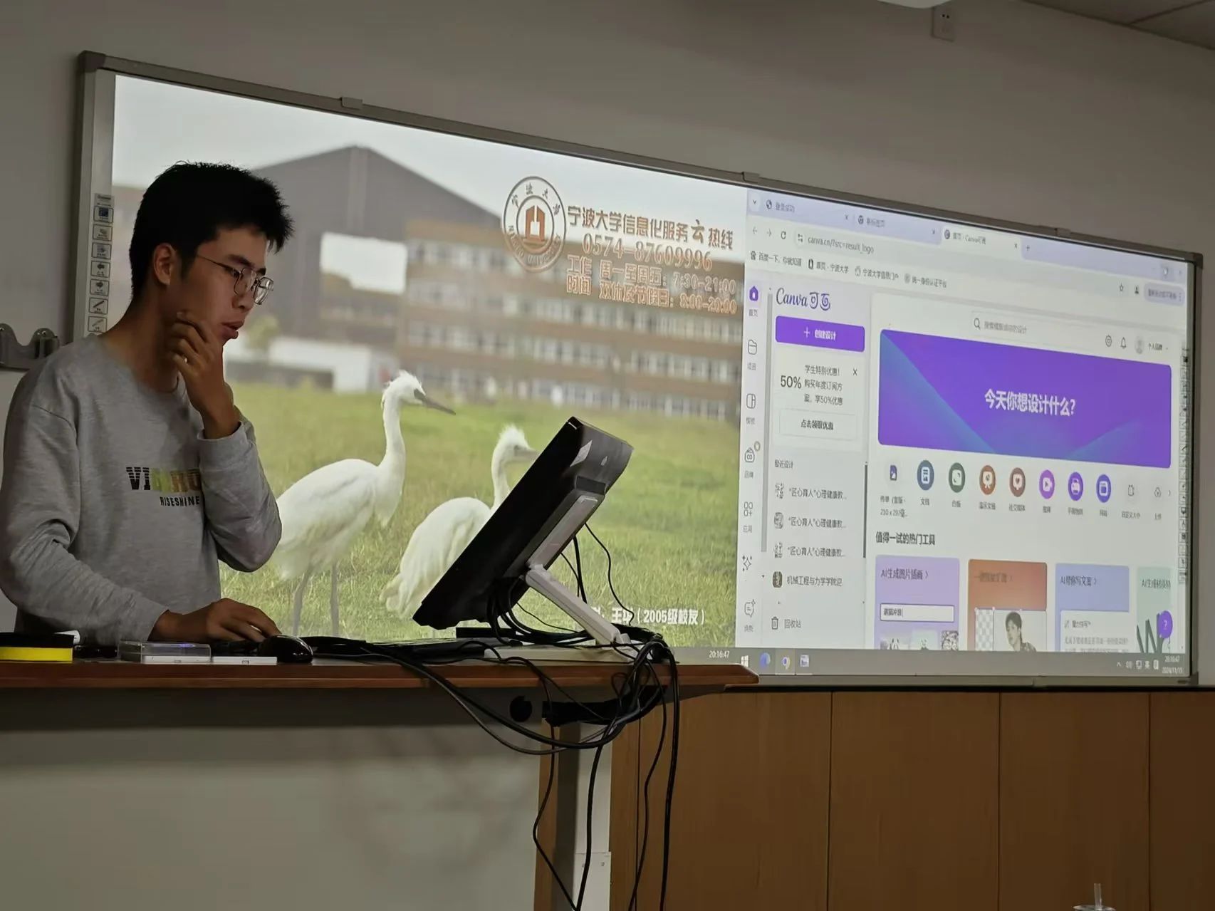 周黎阳同学则以实际案例为基础,向参训同学讲授了海报制作的构图技巧、色彩搭配及字体运用等核心原则。他还演示了几种常用设计工具的操作方法,帮助大家快速掌握从零开始制作专业海报的技能。