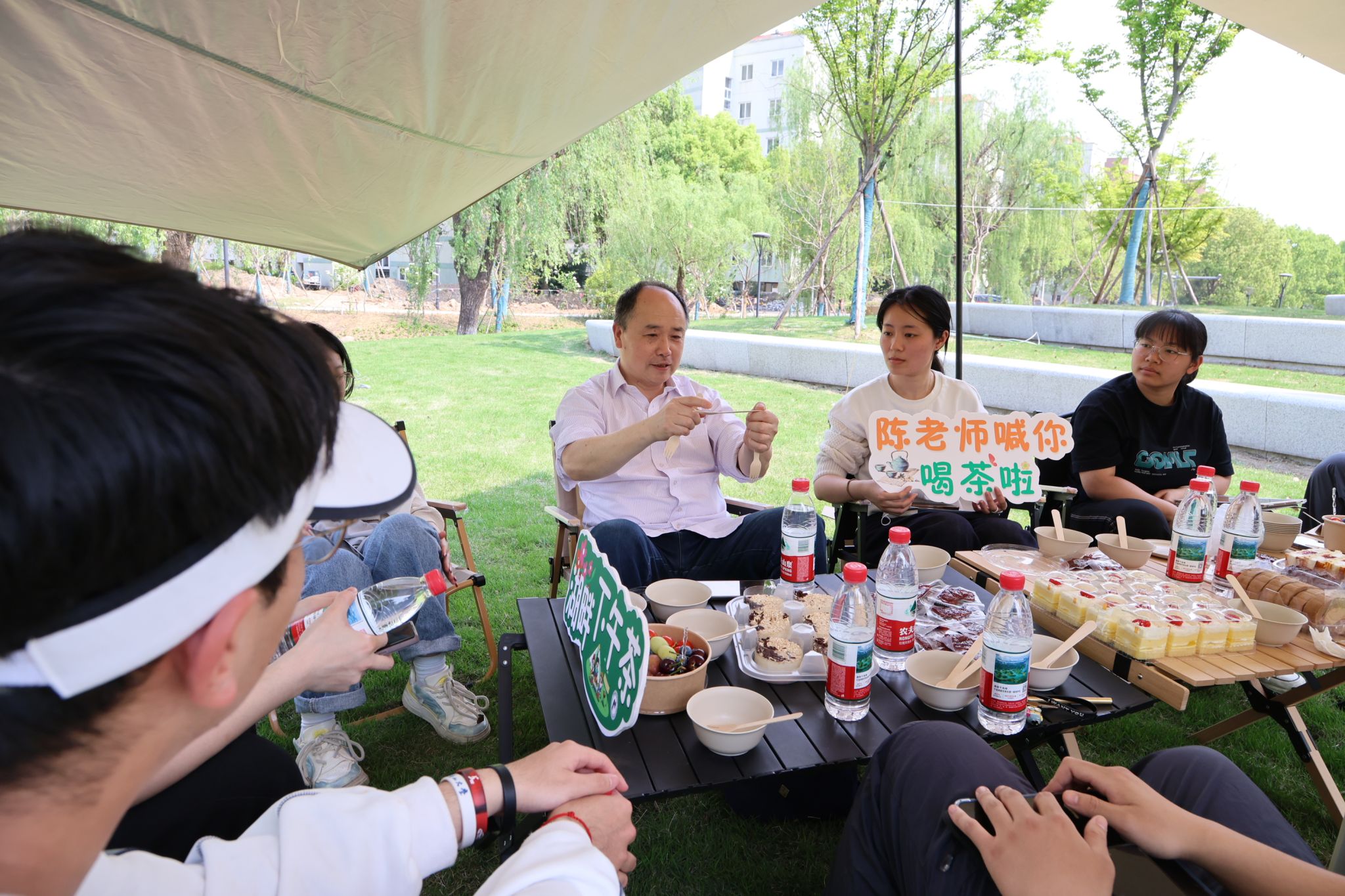 活动现场氛围轻松愉悦,师生们沐浴在明媚的阳光下,品茶畅谈。陈老师既回应了学生在专业学习中的困惑,又为日常困扰提供了切实建议,在场同学纷纷表示收获颇丰,在这样轻松的氛围中获得了意想不到的启发。