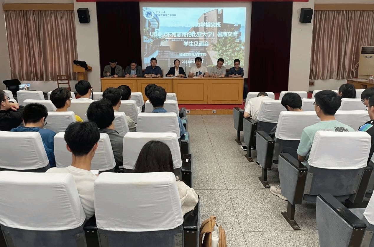 在三楼报告厅举办2023年工程力学拔尖班UBC(不列颠哥伦比亚大学)暑期交流学生见面会,副院长张明华、留学生办主任吴柯、工程力学系副主任丁圆圆、工程力学专业辅导员陈乐鸣等7位教师出席本次交流会。