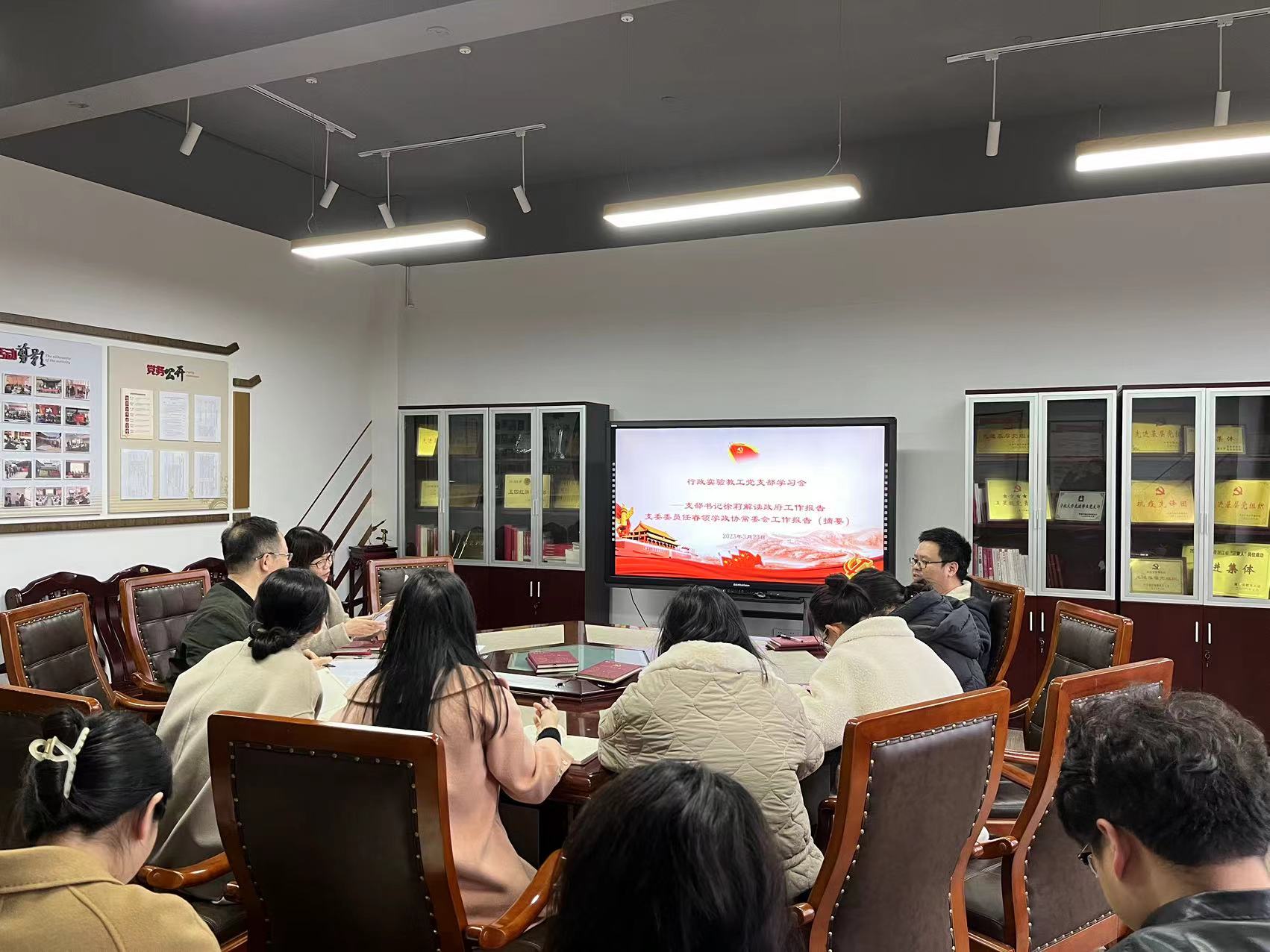 行政实验教工党支部召开学习会,集中学习国务院总理李克强作的政府工作报告和十三届全国政协主席汪洋代表政协第十三届全国委员会常务委员会作的工作报告,两份工作报告分别由支部书记徐莉和支部委员任睿领学。