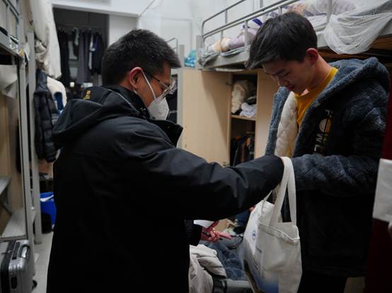 12月17日至18日,学院辅导员先后前往学生公寓、图书馆,带领团委学生会、就业指导中心骨干、各党支部成员,为考研学子送去温暖和祝福,同时关心大家在当前疫情防控背景下的学习状态和身心健康。此外,学院还为部分在本院、外院就读第二学位、备考考研的本院2022届毕业生送去了礼包和祝福。参与送温暖活动的研究生学长学姐,还现场为冲刺阶段的学弟学妹们支招解惑。