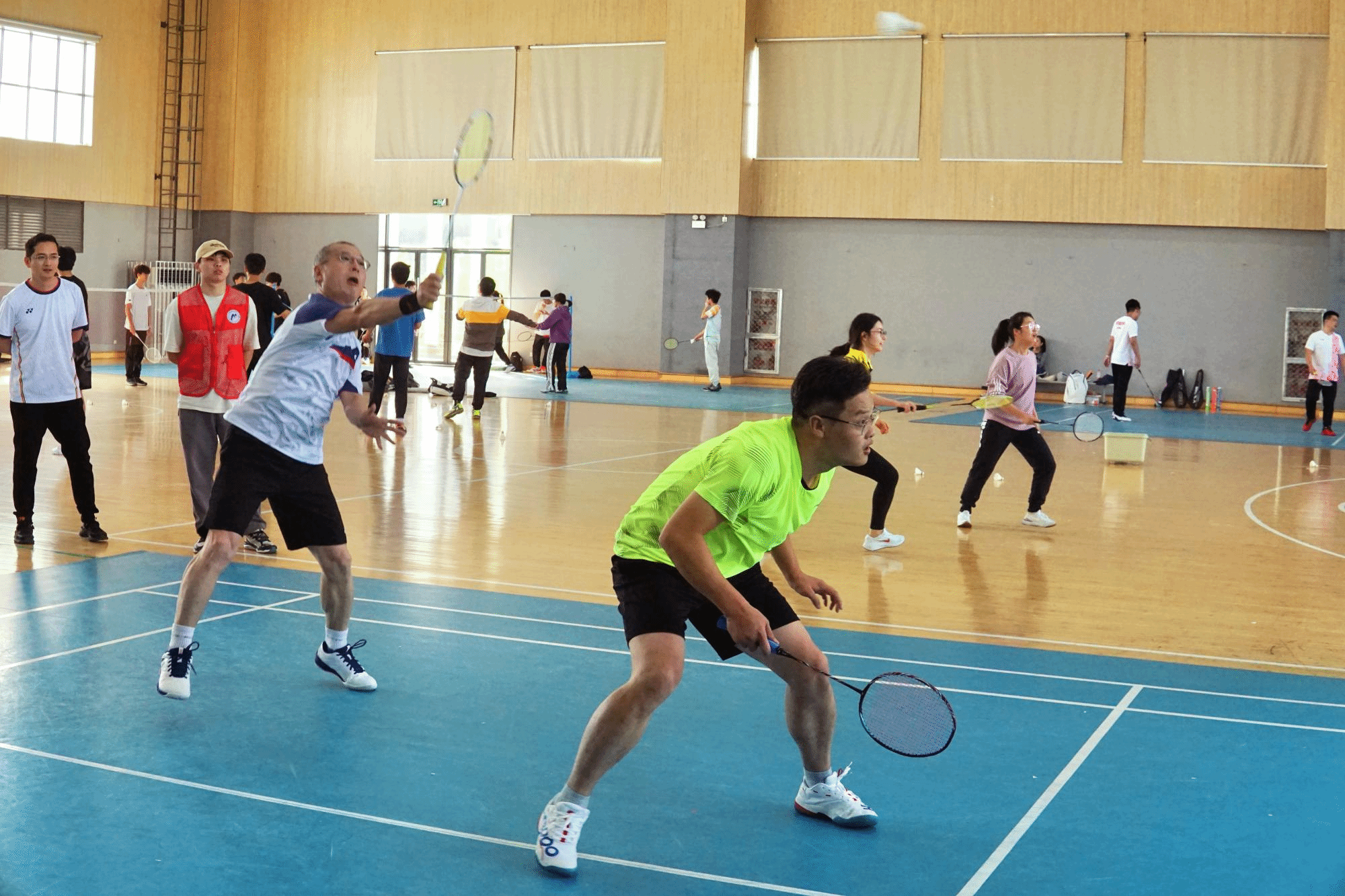 携手商学院在北区忻元甫球馆举行"羽你在一起,奋进新征程"教工羽毛球友谊赛。本次比赛设竞技赛和交流赛两大板块,30余名老师参加了当天的比赛交流。