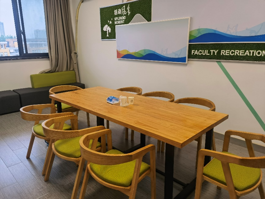 教工之家现位于宗瑞楼504室,分里外两间间,外间为乒乓球室,供学院教职工日常运动使用;里屋为休息区,配有桌椅沙发等,同时教工小家内还备有棋牌毽子跳绳等文体用具,可供学院老师日常交流娱乐使用。