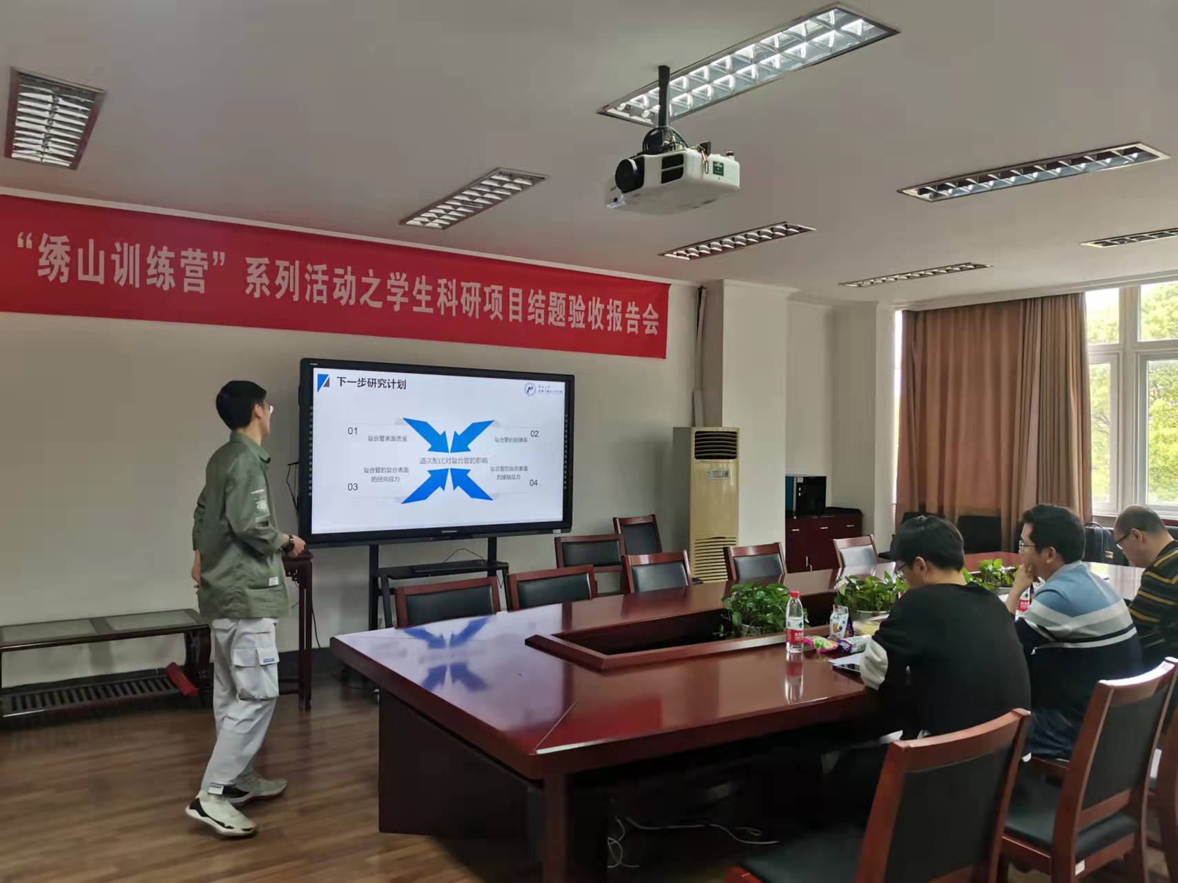 在绣山工程一楼大厅和208会议室分别举行“绣山训练营”系列活动之2022年学生科研项目结题验收报告会。2020年省新苗人才计划、2021年国家级大学生创新创业训练计划和2021年校院两级SRIP等近50个项目参加验收活动。部分2022年新立项学生科研项目现场聆听。