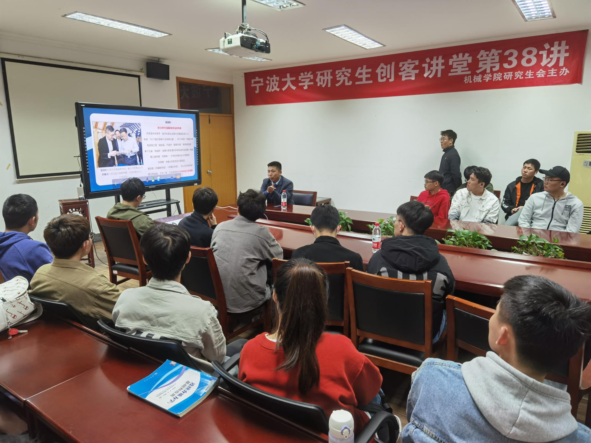 研究生创客讲堂第38讲,学工办主任兼团委书记洪松老师以“双创竞赛与研究生生涯的融合联动”为主题为同学们分享创新创业的相关知识及双创竞赛亲身经历。
