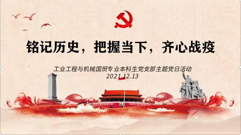 12月13日是第八个南京大屠杀死难者国家公祭日。为沉痛悼念在南京大屠杀中死难的同胞,警醒党员同志勿忘国耻、自强不息,12月13日下午,工业工程与机械国贸专业本科生党支部开展了以“铭记历史,把握当下,齐心战疫”为主题的线上党日活动,活动由支部副书记洪辰主持。
