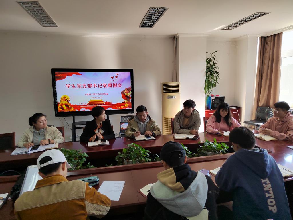 随后,学生党支部书记集中观看十九届六中全会精神新闻发布会,学习热议十九届六中全会精神。力学研究生党支部书记王胜认为这次会议传达的精神体现了任何艰难险阻都阻挡不了中国人民的前进步伐,任何风险挑战都阻挡不了中华民族伟大复兴的历史进程,令人振奋。机械研究生第一党支部书记杨军讲到,这次会议最重要的成果是审议通过了《中共中央关于党的百年奋斗重大成就和历史经验的决议》,彰显了中国共产党百年来的丰功伟绩,鼓舞人心。