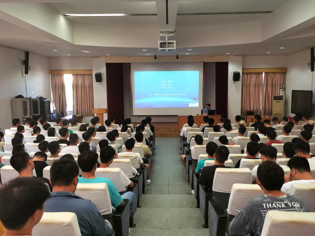 胡凯所在的“白鹭机器人”团队,在第二届中国研究生机器人创新设计大赛中荣获全国三等奖, 实现了宁大研究生在该竞赛奖项上从无到有的飞跃。他作为团队的负责人之一,向在场的学弟学妹们分享了自己的科研成果、比赛历程以及经验总结。之后,张希同志从思想、学习、工作、生活四个方面进行讲述,同时,作为硕博连读的学生,她给出很多学习上的建议。接下来分享的是许佳超同志,他对党员同志的责任和担当和入党流程做了耐心介绍。每位主讲人分享完成后,现场都有良好的互动,同学们就时间分配、书籍推荐、软件介绍、入党要求等方面向他们踊跃提问,并获得了耐心解答。最后,研究生辅导员潘晶婧希望大家积极向党组织靠拢,并从思想、程序、行动上三方面告诉同学们“程序上入党”和“思想行动上入党”的关系和区别,鼓励积极实践,以知促行。