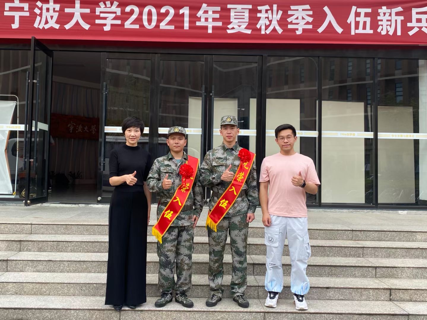 2020届毕业生顾旭杨、2018级贺韫轩光荣应征入伍。学院党委副书记邵丽、征兵工作辅导员参加欢送会。