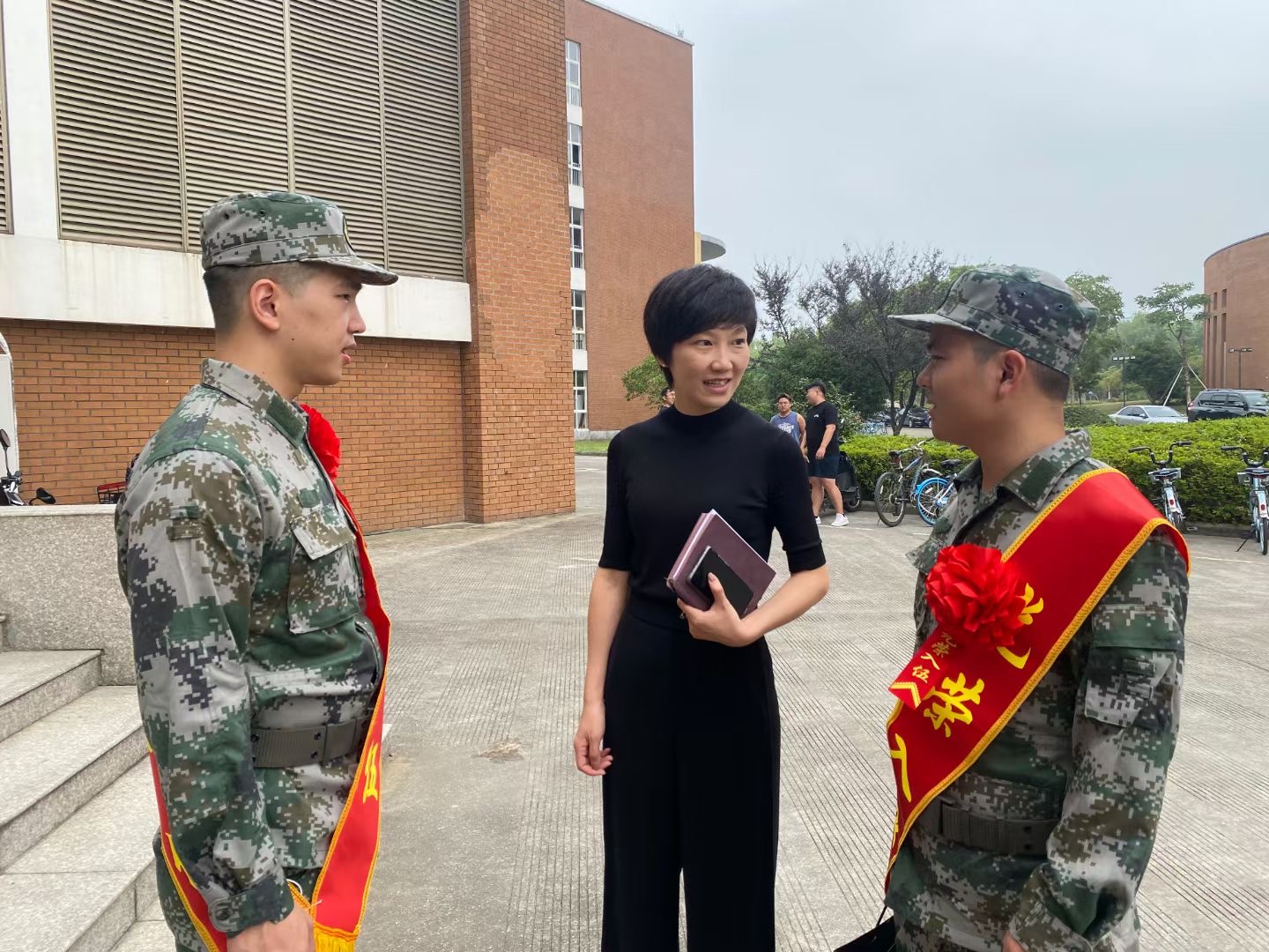 两名学生参加2021年夏秋季应征入伍学生欢送会