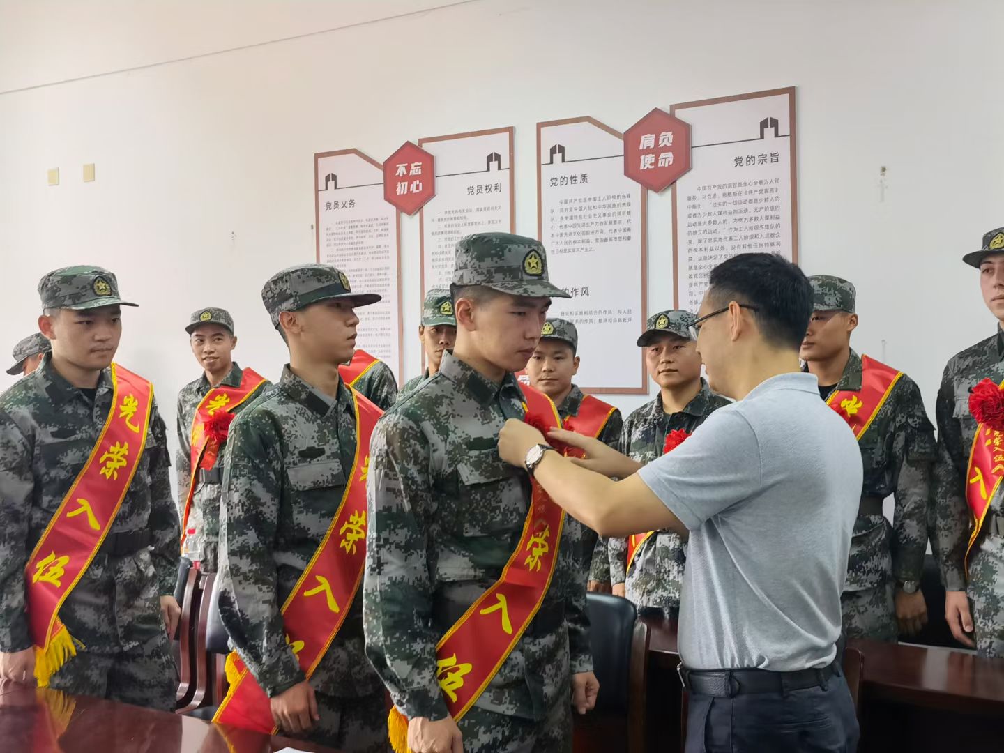 会上,校党委副书记童晓晖为入伍学生佩戴光荣花,代表学校向同学们表示祝贺,并对即将迈入军营的同学提出三点要求:一要树立从军报国的理想,二要有吃苦的思想准备,三要苦练军事本领,做一名合格的军人。