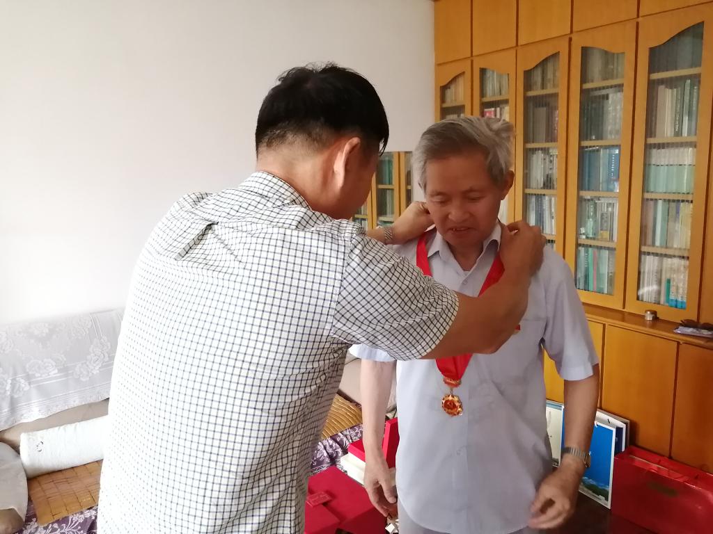 随后,胡泓书记一行分别走访慰问了老党员张懋炯老师和金美文老师。胡泓书记对两位老党员的身体状况和生活情况进行了详细了解,祝愿他们身体健康,并代表党组织向两位老党员颁发了“光荣在党50年”纪念章,感谢他们在党的教育事业方面作出的贡献。张懋炯老师和金美文老师感谢党组织对老党员的关心关爱,并结合疫情防控工作,赞扬了党的领导的伟大。