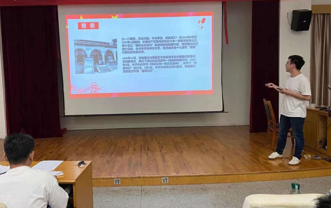 洪辰同志以中共余姚四明山第一支部纪念室的陈列物品为主线,认真讲解相关历史,勾勒出中国共产党在四明山留下的红色印迹,生动地再现中国共产党筚路蓝缕的奋斗历程。戴文泽同志详细讲述了西安事变,及其和平解决给中国社会发展带来的转变,讲述了张学良、杨虎城两位爱国将领的英雄事迹。韩文泽同志以《不要忘了延安》为主题,讲述了周恩来同志崇高坚定的理想信念、无限忠诚的政治品格、一心为民的公仆情怀、实事求是的工作作风。支部每位党员分别围绕党史、新中国史重大事件,带领大家深刻感悟中国力量、中国精神和中国特色社会主义制度的优越性,激励大家为中华民族伟大复兴不懈奋斗。