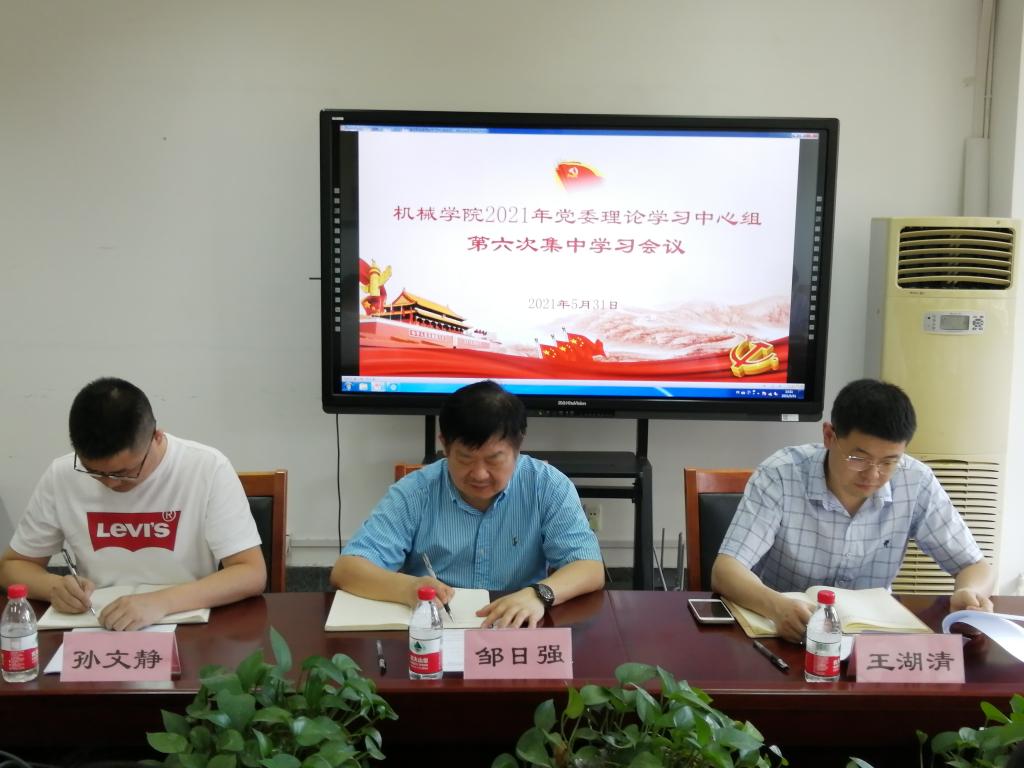 为推进党史学习教育走深走实,不断深化学习效果,5月31日,机械学院在绣山工程大楼208会议室组织召开党委理论学习中心组2021年第6次集中学习会,学习主题为“学史力行,立德树人”。校党委委员、工会主席邹日强,第四巡回指导组王湖清、孙文静,学院党委理论学习中心组成员参加本次会议。会议由学院党委书记胡泓主持。