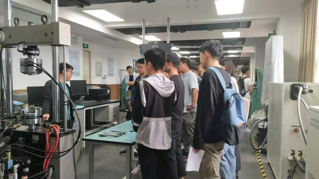 接下来,同学们在史同亚老师的带领下参观了冲击与安全工程教育部重点实验室,学习了多种仪器设备的使用方法。随后,同学们又参观了教育部重点实验室科技成果展览栏,科技成果展览集中展示了学院在党领导的科技发展历程中取得的成就,包括科研项目、科技奖项、成果展示、社会服务等内容。