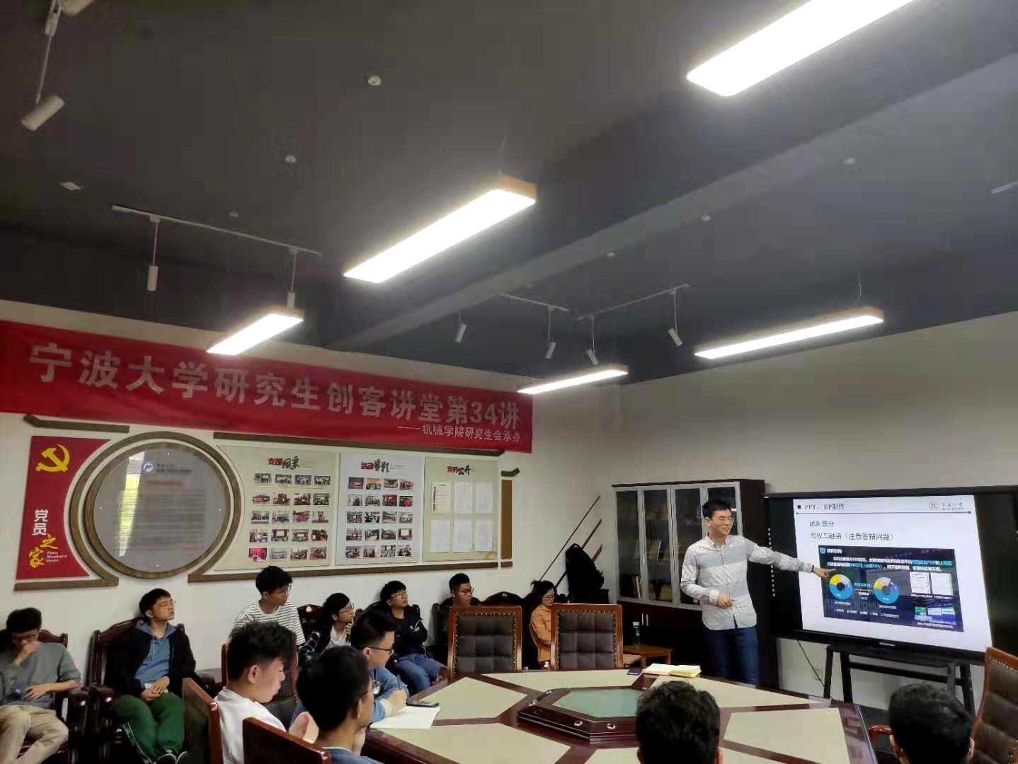 研究生创客讲堂第34讲。4月29日下午,“互联网+”国赛金奖选手吴烨卿在绣山工程楼202教室,应邀作题为“‘互联网+’大赛经验总结与项目孵化指导”的讲座。
