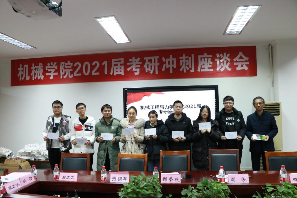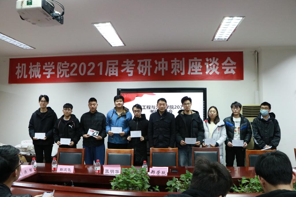 2021届考研冲刺座谈会在绣山工程楼208会议室顺利举办。本次活动旨在为本院考研学子在寒冷的冬日里送上考研冲刺温暖礼包、听取考研同学珍贵建议、预祝考研同学成功上岸。本次考研座谈会得到了学院领导、老师的大力支持,学院党委书记胡泓、院长郑荣跃、党委副书记邵丽、副院长张明华、彭文飞悉数出席,参加座谈会的还有学院各系主任、学工办辅导员和30余位考研学生代表。会议由学院就业指导中心主任张万兵主持。