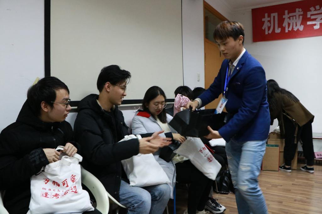 紧接着书记院长将亲笔书写的寄语贺卡,递交到每位考研学生代表手里,预祝他们能在即将到来的研究生考试中旗开得胜、金榜题名!随后由就业指导中心和学生会成员为他们送上暖心助考礼品。当他们收到学院精心准备的爱心助考“十八件套”,围上红围巾时,现场气氛达到高潮,从他们脸上洋溢着的自信的笑容中,可以看出每个学生都感受到了来自学院的温暖,也做好了最后的冲刺准备。