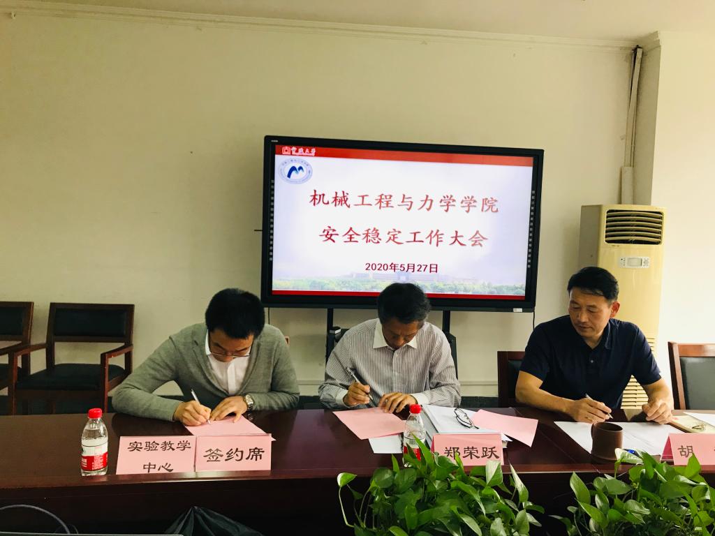 会上,学院党政领导与实验教学中心主任签订了创安责任书,其他各系、各科研实验室及各教学实验室创安责任书将于会后签订,以层层落实安全工作责任制。