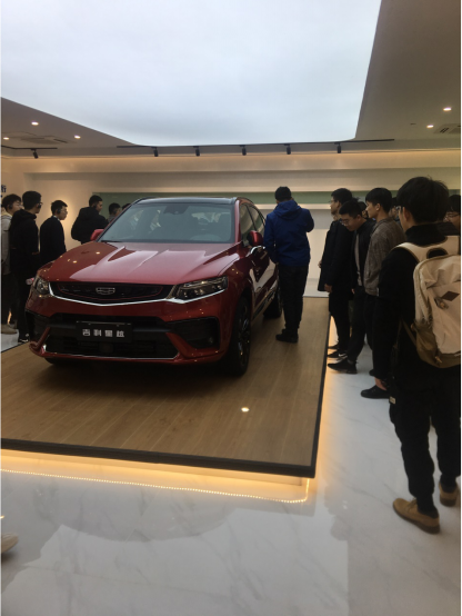 同学们于下午两点到达吉利汽车有限公司杭州湾工厂,公司接待人员首先介绍了吉利集团的企业发展历程,成人动漫和企业精神。随后带领同学们参观了汽车的总装车间,了解了汽车的整个装配流程,从汽车车身的进厂到轮胎仪表盘的装配,从AGV小车的物料自动运输到机器人的协同装配,从汽车后挡风玻璃的自动化涂胶到整车出厂的检测,极大的扩展了学生对汽车装配的认识,最后接待人员带领同学们去产品展览区,为大家介绍了整个汽车制造基地的整体规划,并播放了其他车间生产产品的视频,展示了吉利集团先进的汽车制造技术,同时同学们也体验了吉利最新的汽车产品。