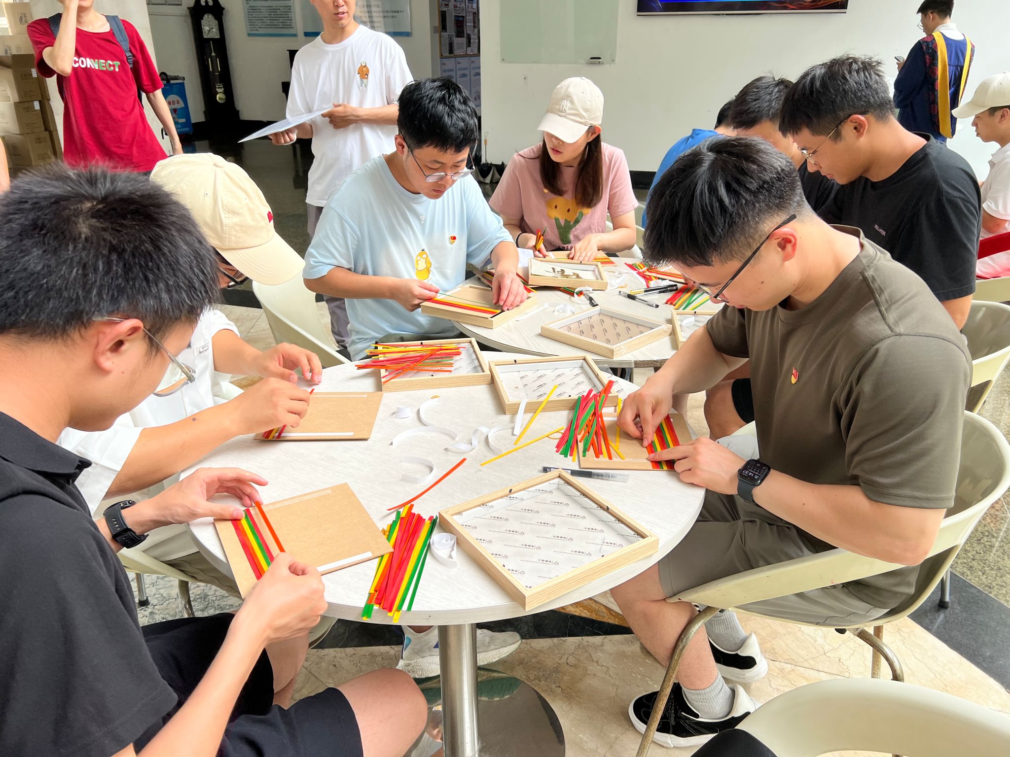 随后,支部成员一起制作非遗竹编画,一挑一压,一幅幅精美的竹编画制作完成,小小的竹编中蕴含着中华民族劳动人民辛苦劳作的结晶。竹子作为正直谦虚、坚韧不拔、无私奉献的精神代表,每一名共产党员都应该学习“千磨万击还坚劲,任尔东西南北风。”的品质,坚定信念,保持正直的政治本色。