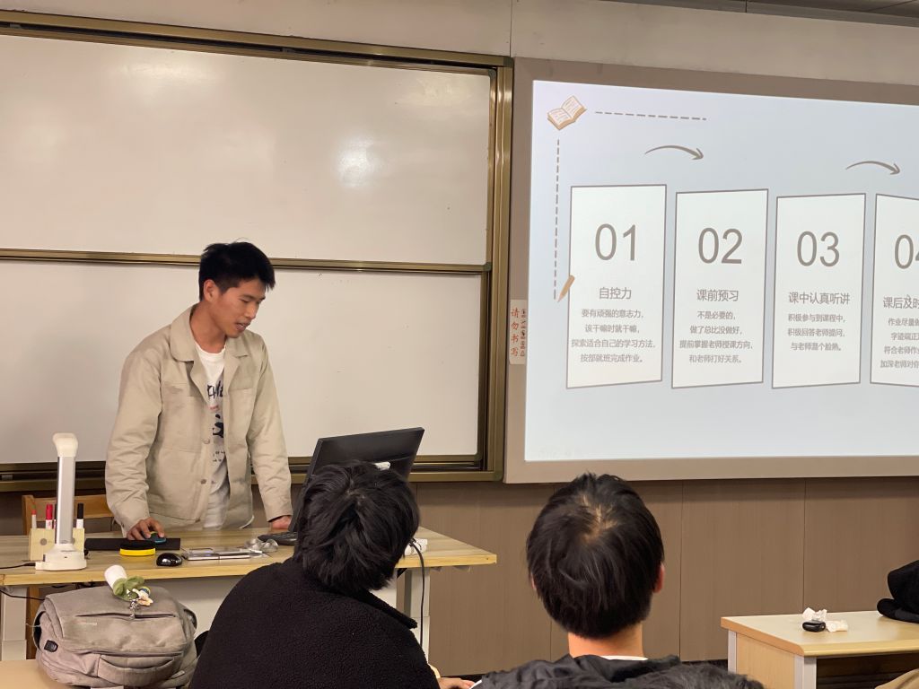 陆文杰同学分享了做好打“持久战”的物质和心理准备的重要性。此外,他还向大家“透露”了提高成绩和获取创新学分的小tips。