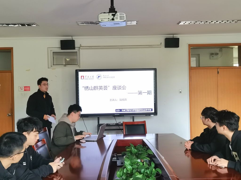 为营造优良的学术氛围,更好地满足研一同学的学术需求,11月17日下午,“绣山群英荟”座谈会在绣山工程楼208会议室顺利举办,本次座谈会主讲人为国奖获得者21级机械专业陆栩奔学长,10余名同学参与研讨。