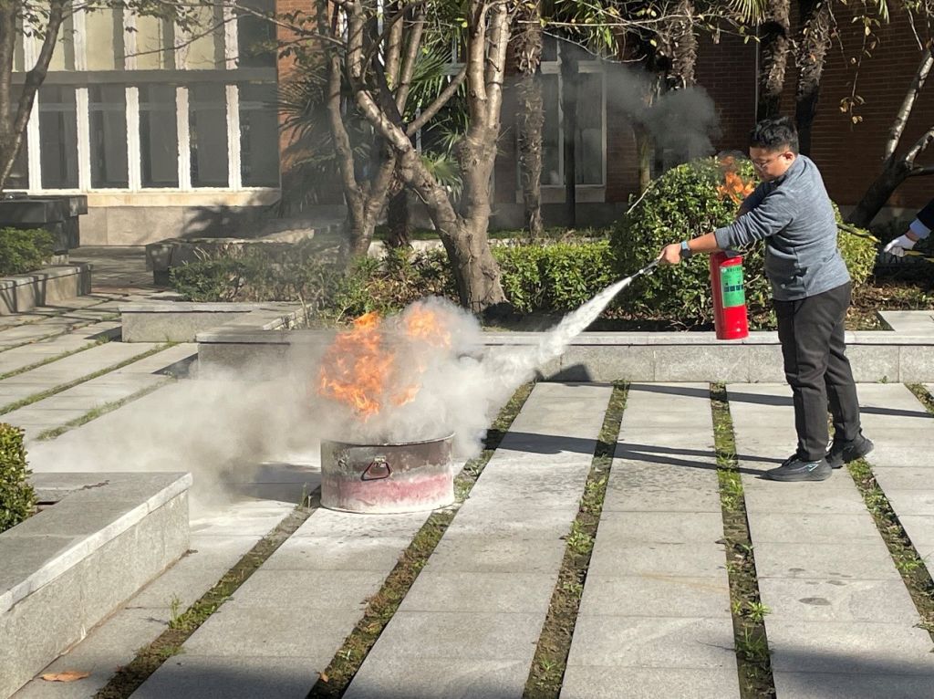 组织了灭火器使用讲解及灭火实战演练活动。演练在绣山工程楼后方空地举行,30余名师生共同参与。