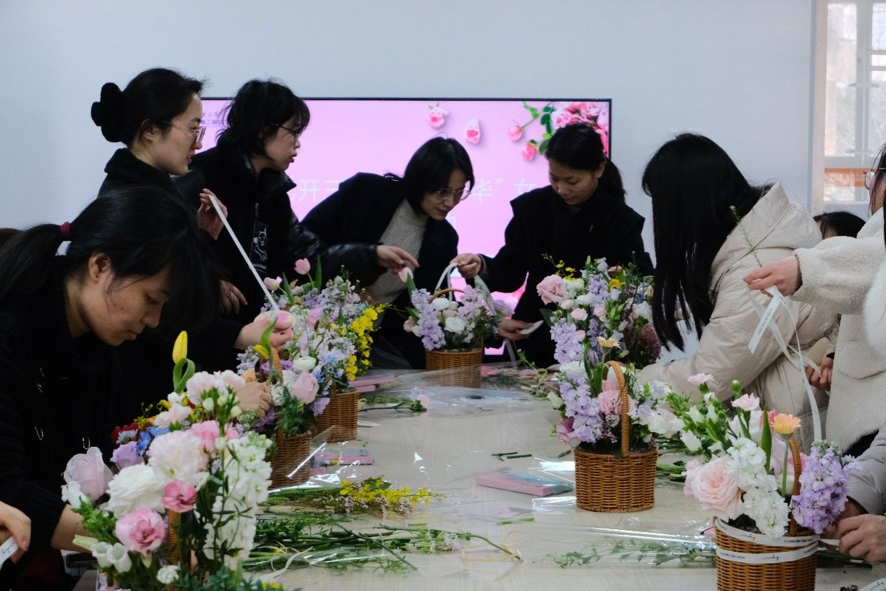 分工会组织学院女教工开展“花开三月,共享芳华”插花活动。此次活动特别邀请了专业花艺师现场指导,吸引了众多女教工的热情参与。