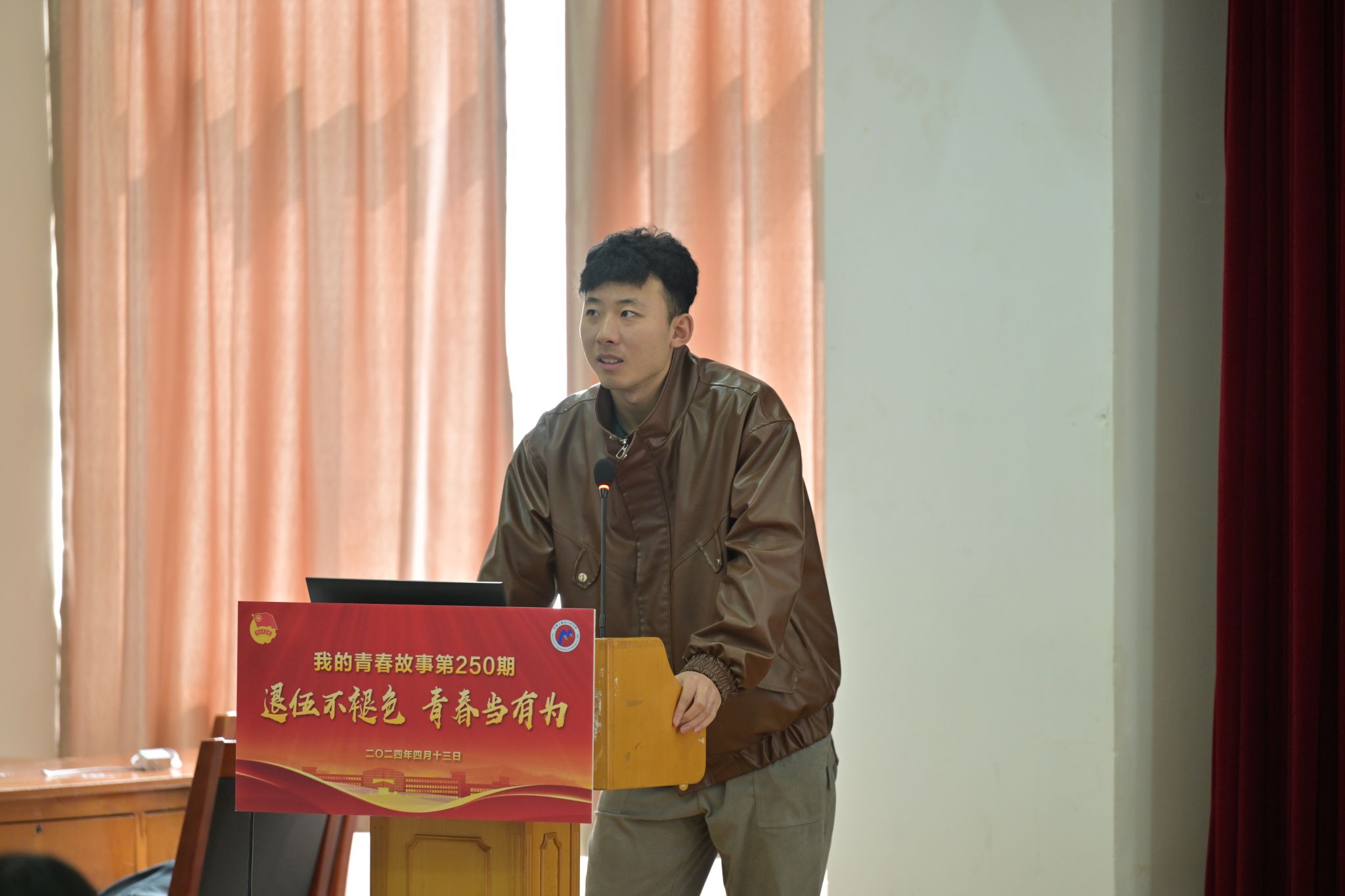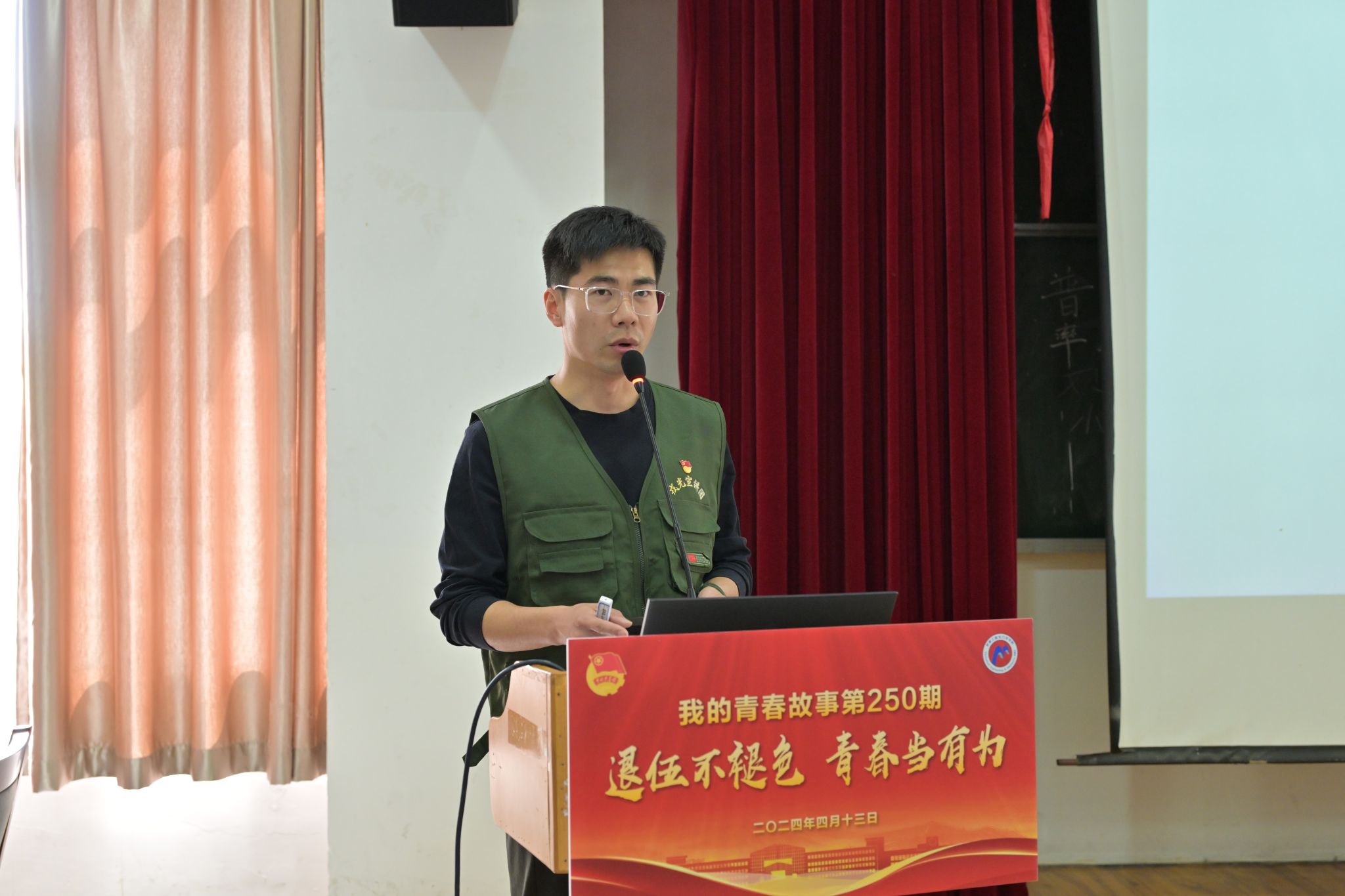 另一位区戎光宣讲团成员宗梦华讲述了自己毕业后进入部队的经历,以及在退伍后转业转型,敢于抓住机会的历程,激励当代大学生勇于面对挑战、勇往直前。