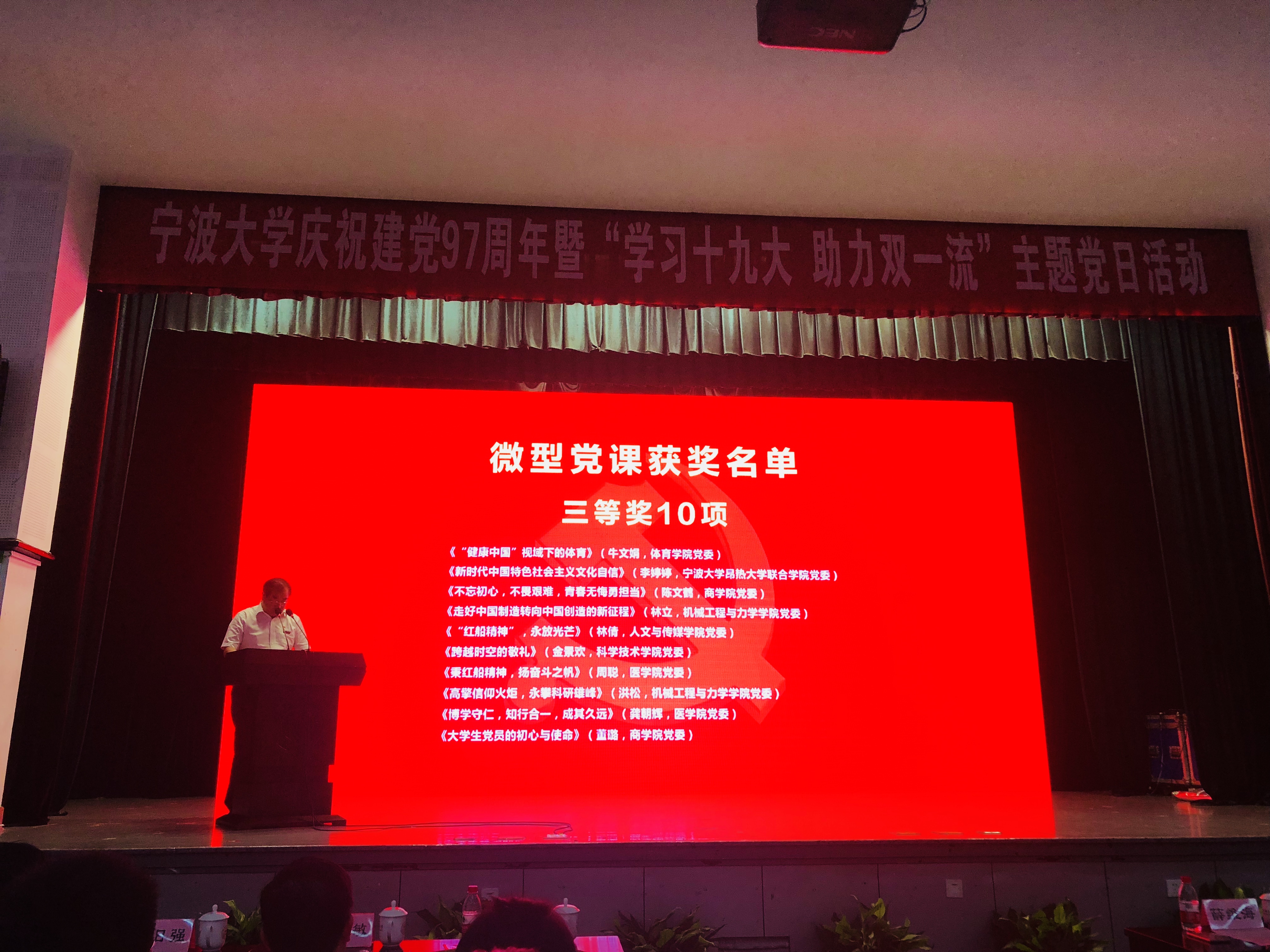 在学校微型党课比赛中,由洪松主讲的《高擎信仰火炬,永攀科研雄峰》和林立主讲的《走好中国制造转向中国创造的新征程》分别荣获三等奖;