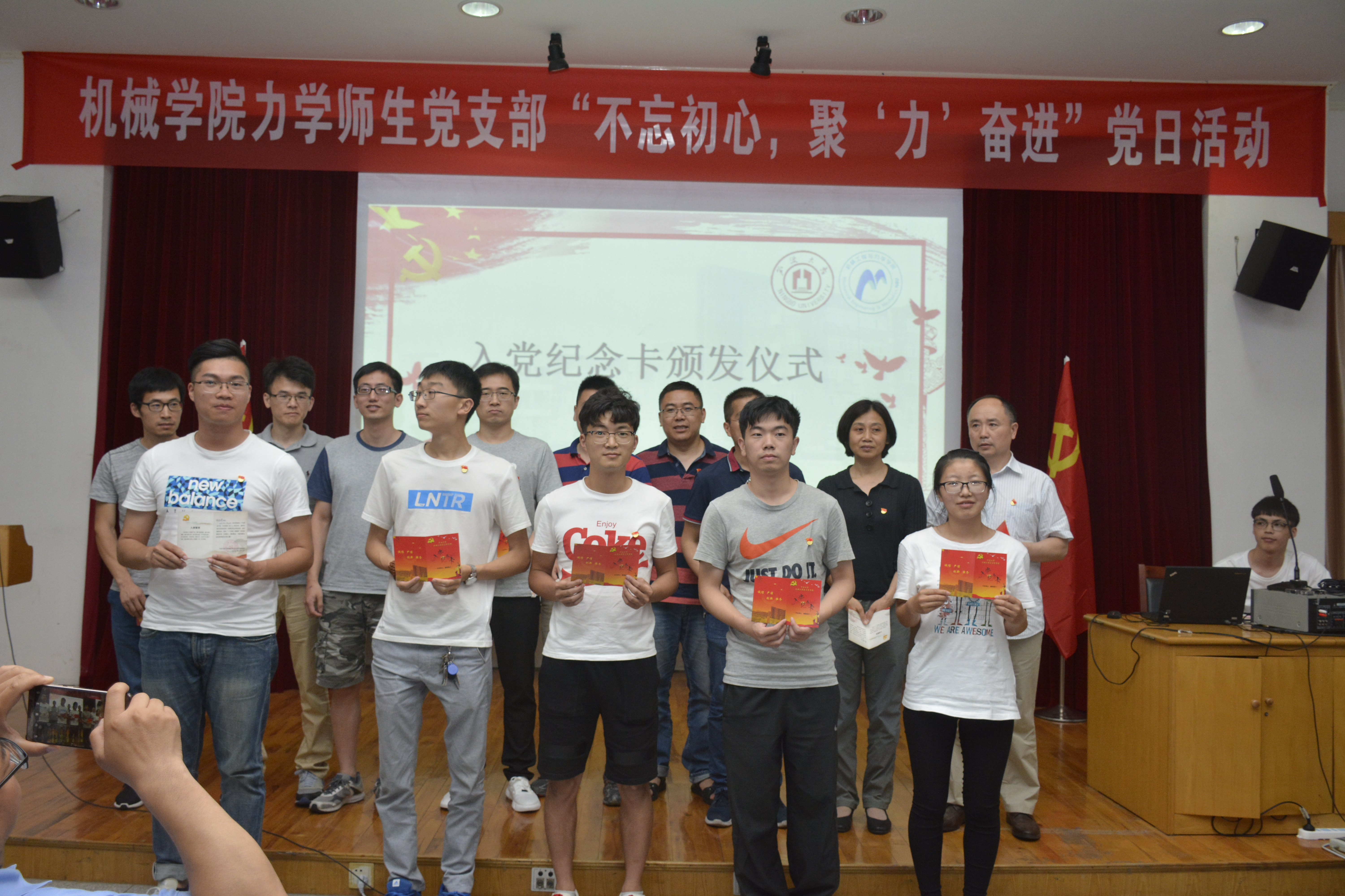 在最后的“矢志不渝·启征程”环节中,进行了入党纪念卡的颁发仪式,由学院党委书记徐一萍,党委副书记曹虹为历年5、6月份入党的力学师生党员颁发了入党纪念卡,以此作为师生的入党纪念。活动最后,全体党员面对党旗举起右拳庄严宣誓,一起重温了入党誓词。