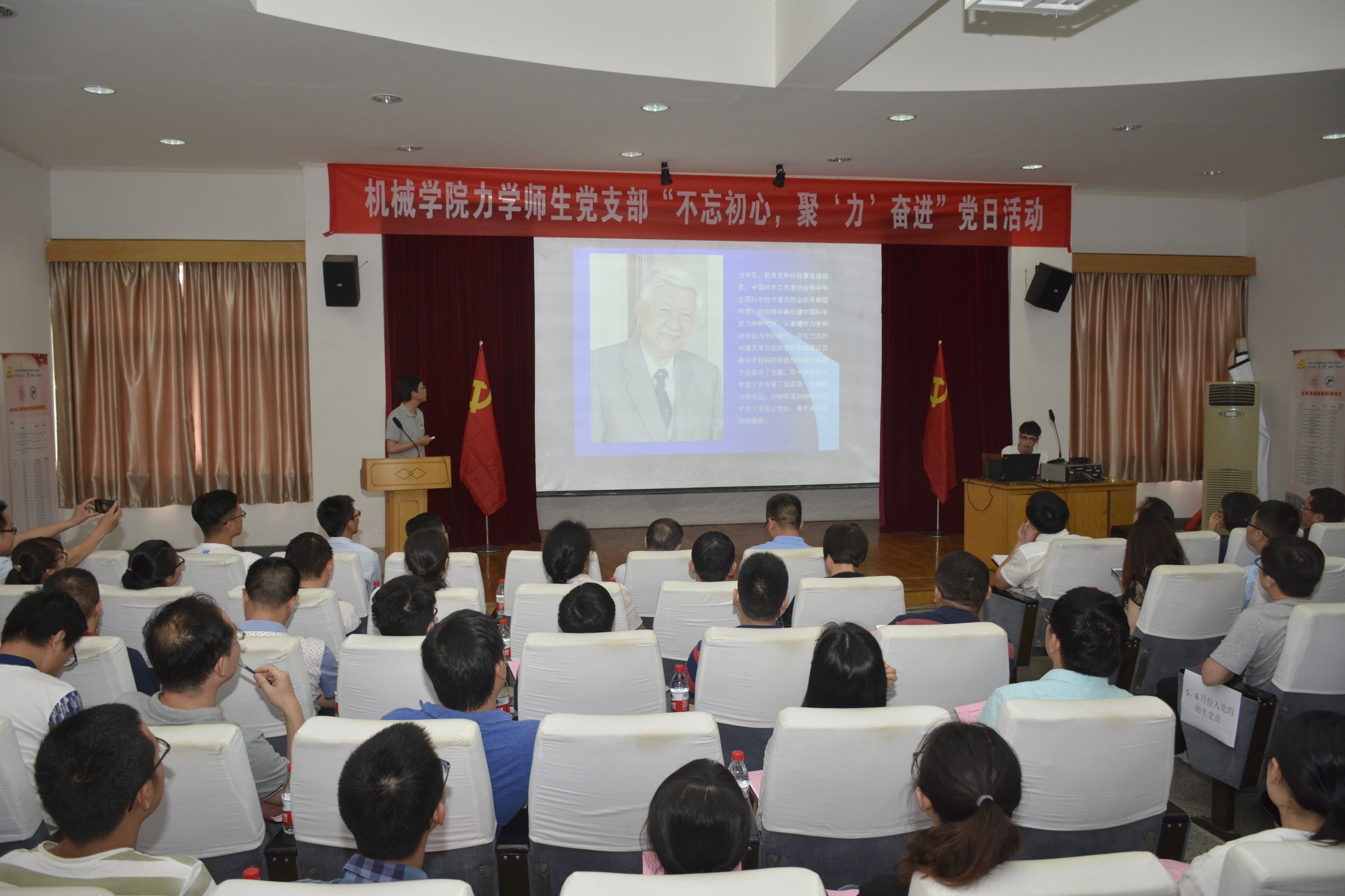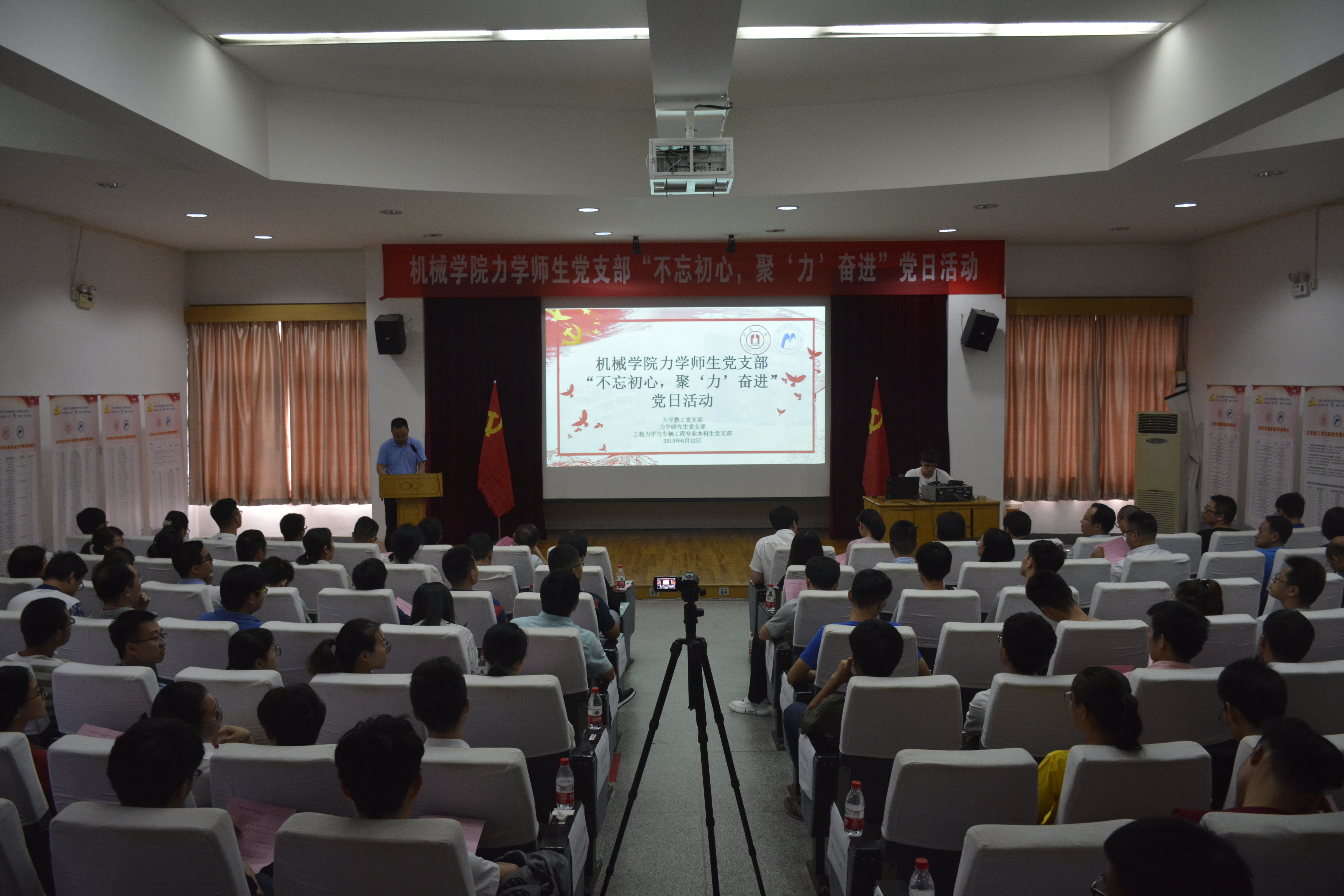 6月12日下午,力学教工党支部、力学专业研究生党支部和工程力学与车辆工程专业本科生党支部在三楼报告厅举行了以“不忘初心,聚‘力’奋进”为主题的党日活动。学院党委委员、力学专业师生党员、其他14个师生党支部支委和学生党建中心委员等参加了本次活动,同时学校评审团和医学院观摩团也全程进行了观摩。活动由力学教工党支部书记张明华教授主持。
