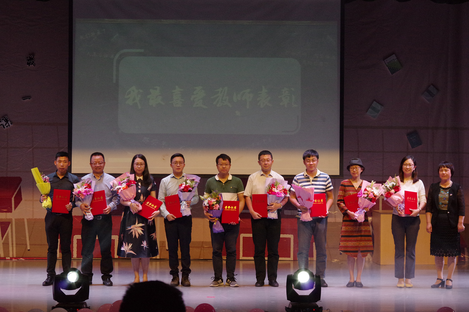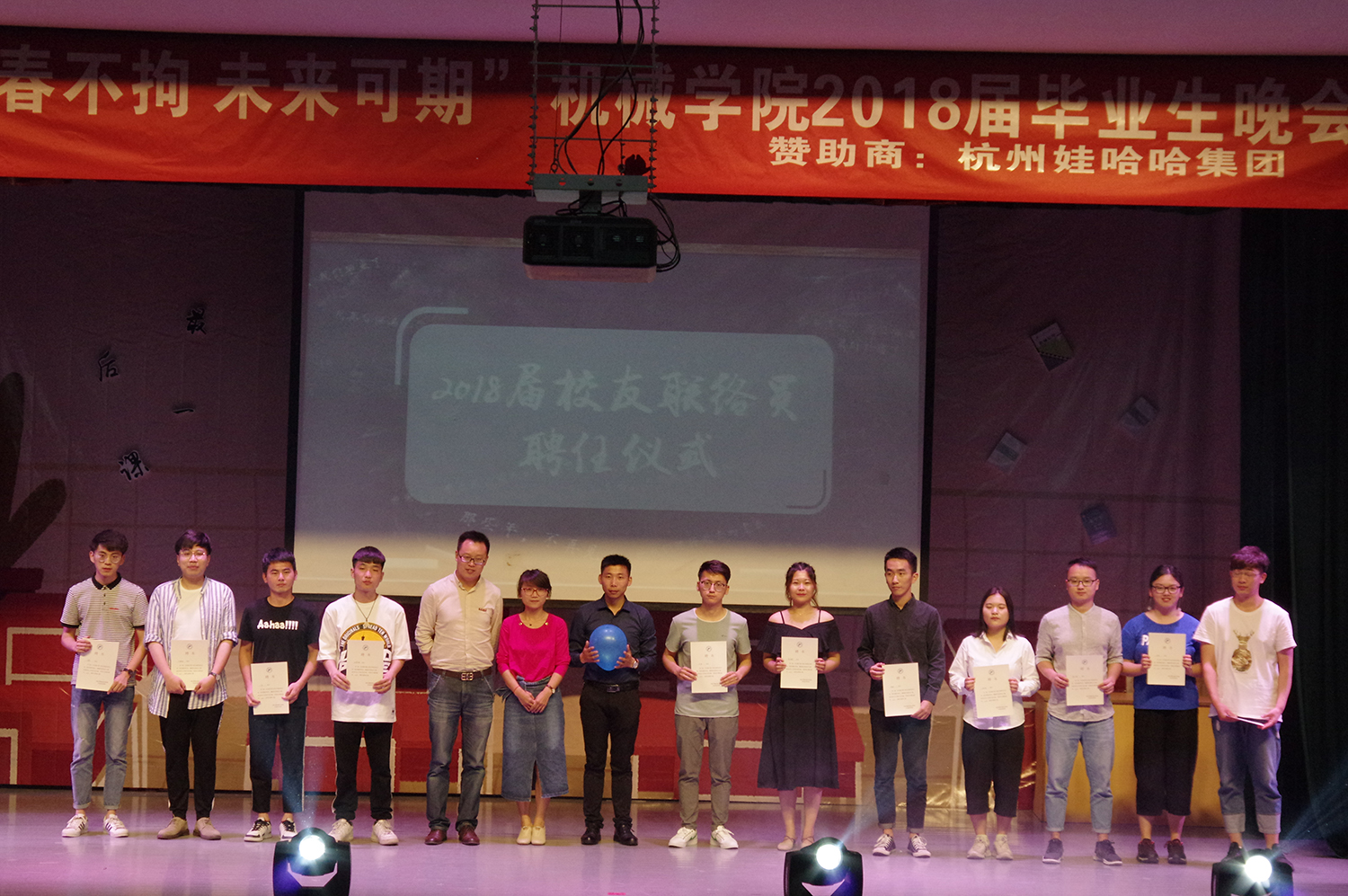 “我最喜爱的教师”和“最美服务之星”表彰仪式,并为2018届校友联络员颁发了聘书。此外,为营造良好的院风学风,学院首次为2018年考取硕士研究生和博士研究生的28名“考研之星”颁发了奖状。最后,全体工作人员、部分表演者及老师们纷纷拍照合影留念,晚会就此圆满落下帷幕。