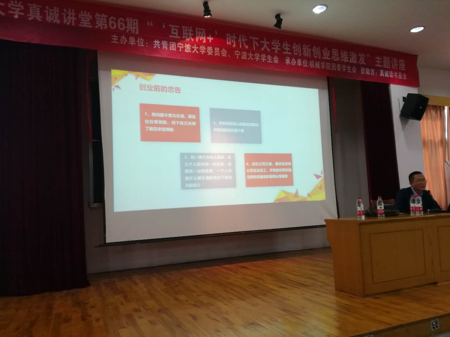 真诚讲堂第66期“‘互联网+’时代下大学生创新创业思维激发”主题讲座在绣山工程楼三楼报告厅举行。