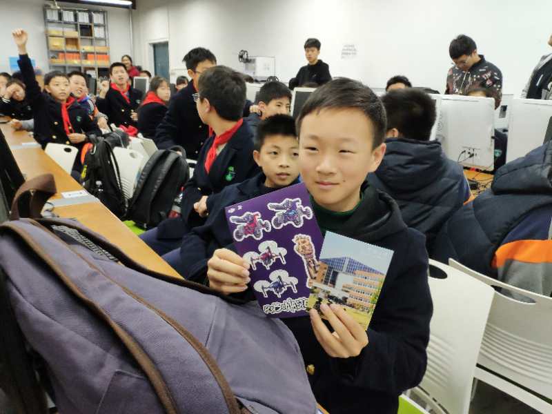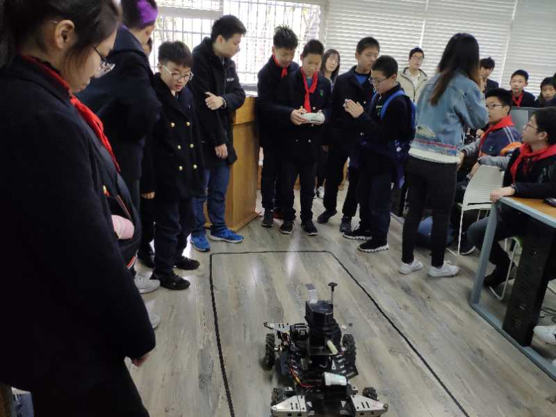 在包玉书三号教学楼111智能车与机器人创新实验室内,社团成员热情接待了82名初一同学及陪同教师们。活动寓教于乐,形式丰富。俱乐部采用视频讲解与提问相结合的方式给同学们介绍了“big dog”、ABB YuMi双臂机器人、波士顿动力机器人、“Atlas”等机器人,在学到机器人种类,功能与原理的同时,积极参与互动的同学们还得到了印有俱乐部战车的明信片与贴纸。小朋友们还依次操作了由实验室“成人动漫
