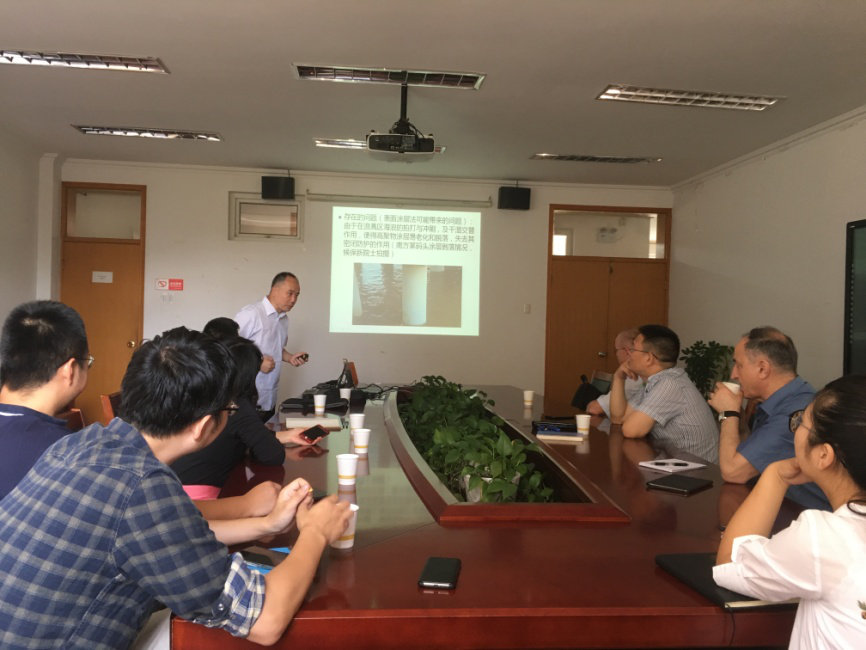 陈建康教授,杨子旋、崔明君、鲁思渊和曹均博士分别作了关于混凝土在海洋环境中腐蚀及力学损伤机理的研究,管线钢在海洋环境中应力腐蚀行为研究,海洋环境中长效防腐涂层的制备及腐蚀机理研究,海洋环境中模具用不锈钢腐蚀机理研究以及重载滑动轴承表面液体喷涂MoS2/PI多聚物涂层的摩擦性能研究的报告。