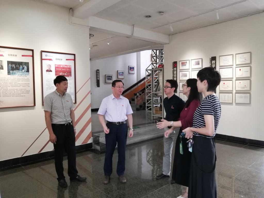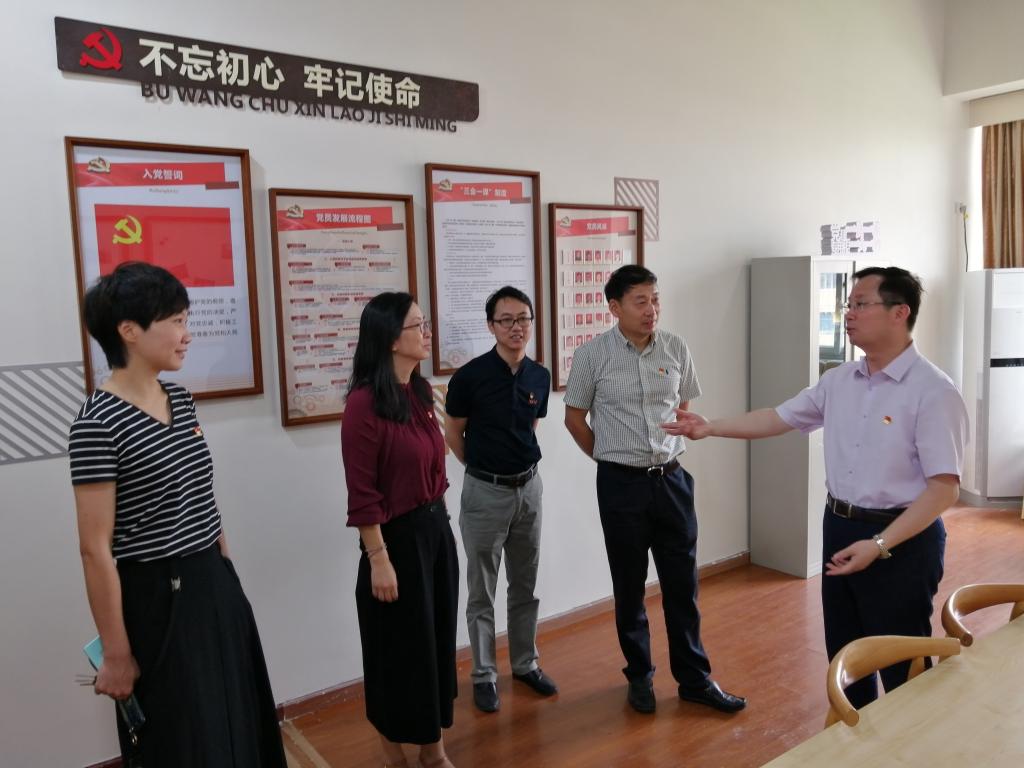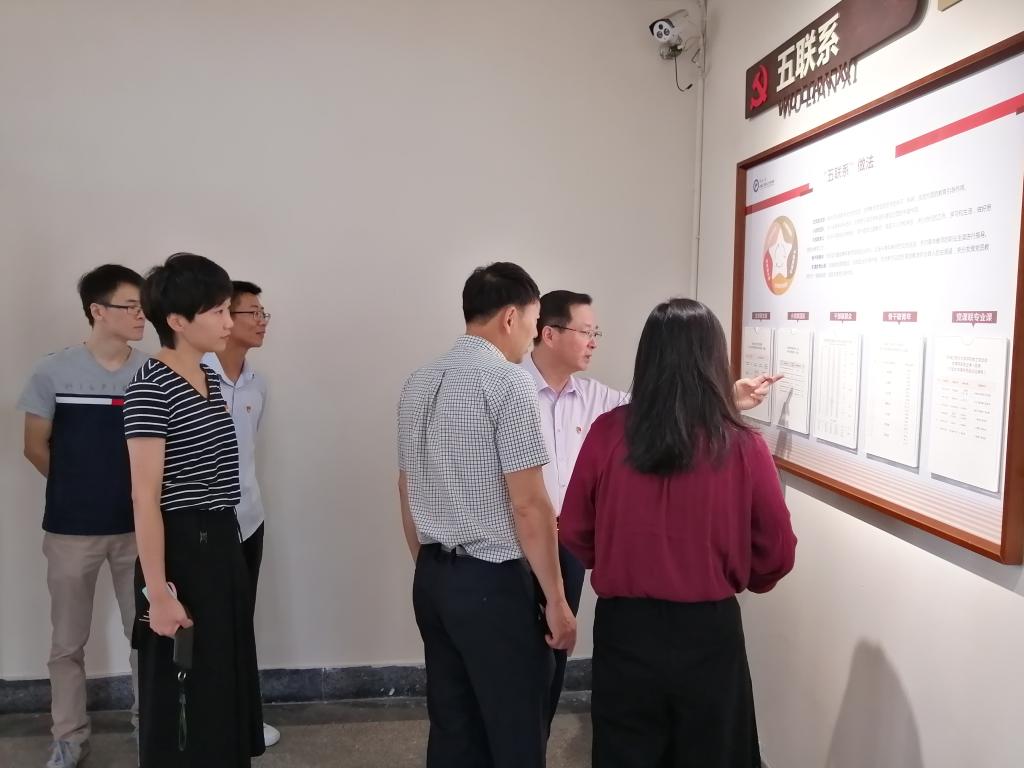 调研党建阵地建设和全国高校“双带头人”教师党支部书记工作室。院党委书记胡泓、副书记邵丽、副院长兼全国高校“双带头人”教师党支部书记工作室党支部书记张明华等教师参加调研。
