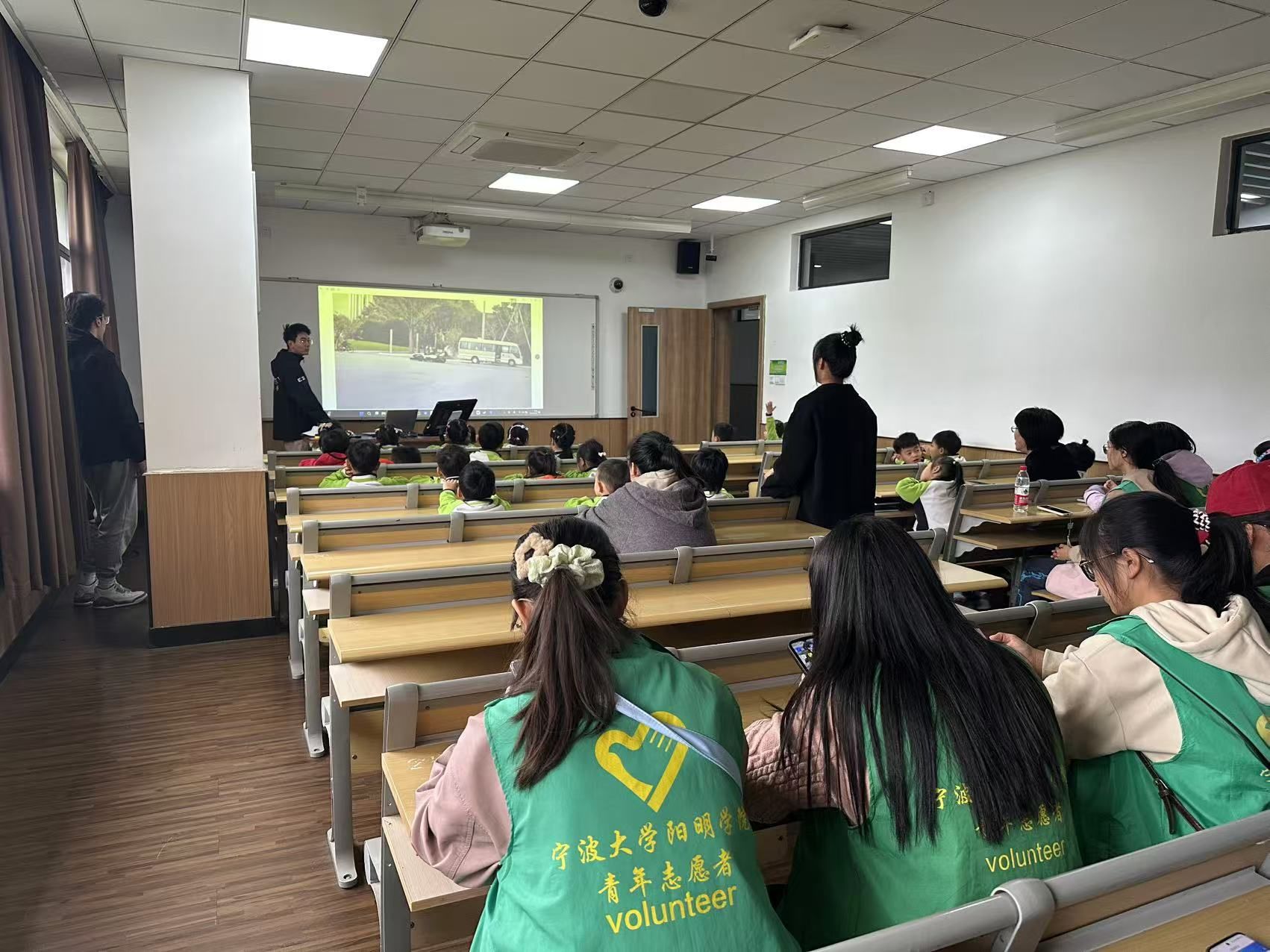 活动伊始,翱翔车队队员通过播放宣传视频、介绍方程式赛车、科普赛车知识与文化、以及问答发送奖品的方式来与小朋友们进行互动和教学,激发了小朋友们对于赛车浓厚的兴趣。