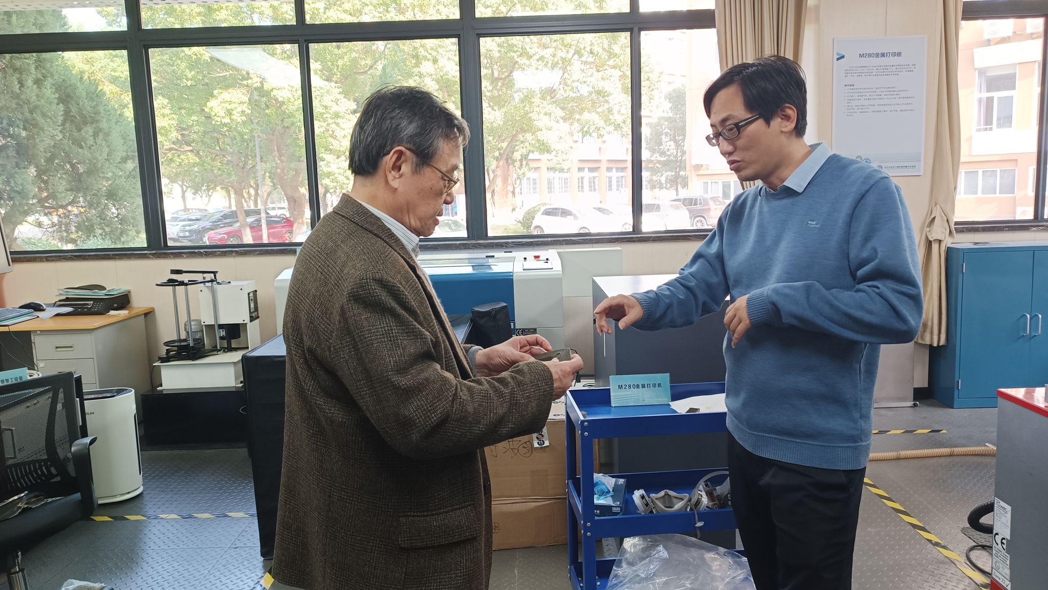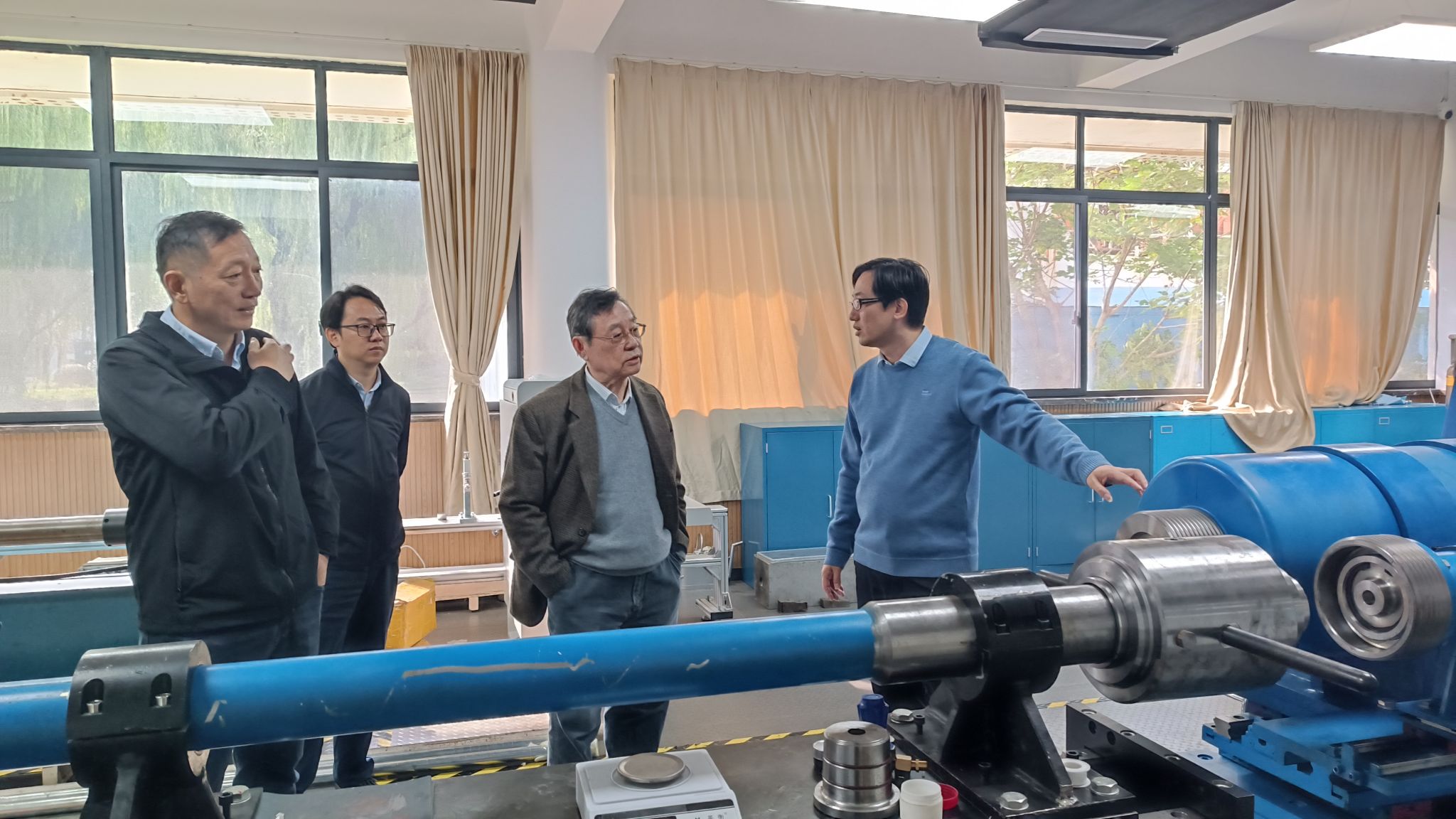 在学院领导班子陪同下,陈大年教授参观了冲击与安全工程教育部重点实验室,和学院教师进行亲切交流。他深情回忆了力学学科建设初期的艰苦历程,鼓励年轻教师一定不要怕压力和困难,勇于探索未知,努力创造更好成绩。他结合自己当前的研究,指导年轻老师如何充分利用实验室好的条件,聚焦科学前沿和国家发展,特别是针对国防建设中的力学问题和医学健康领域里的力学问题,大胆假设、小心求证,不断探索力学特别是冲击动力学发展新方向。
