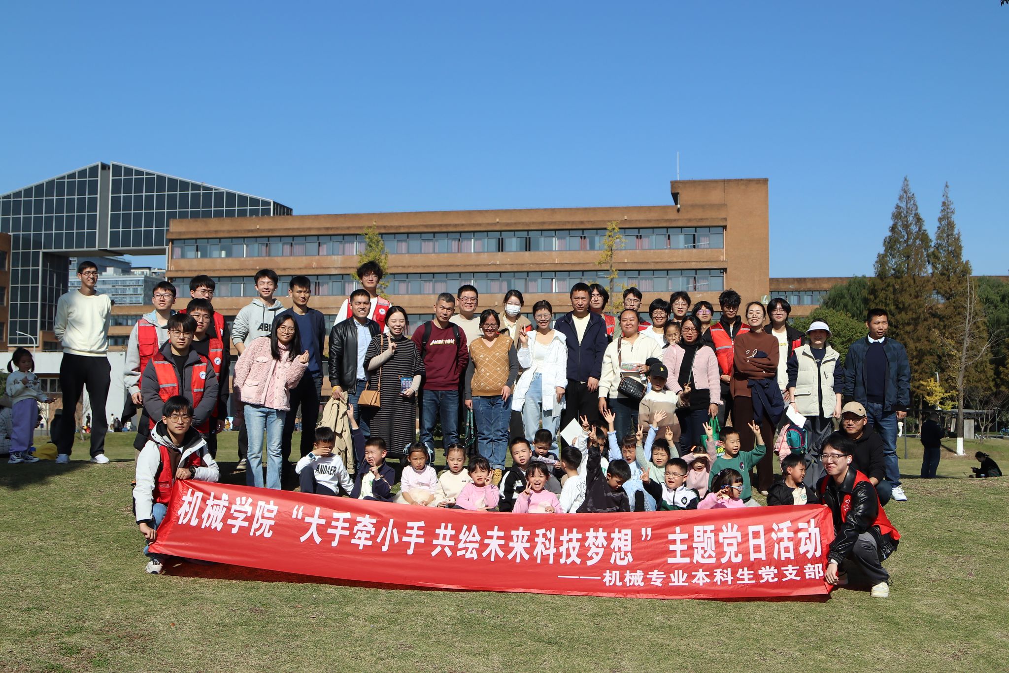 分工会行政教工小组、机械专业本科生党支部联合主办“大手牵小手 共绘未来科技梦想”亲子校园研学活动。
