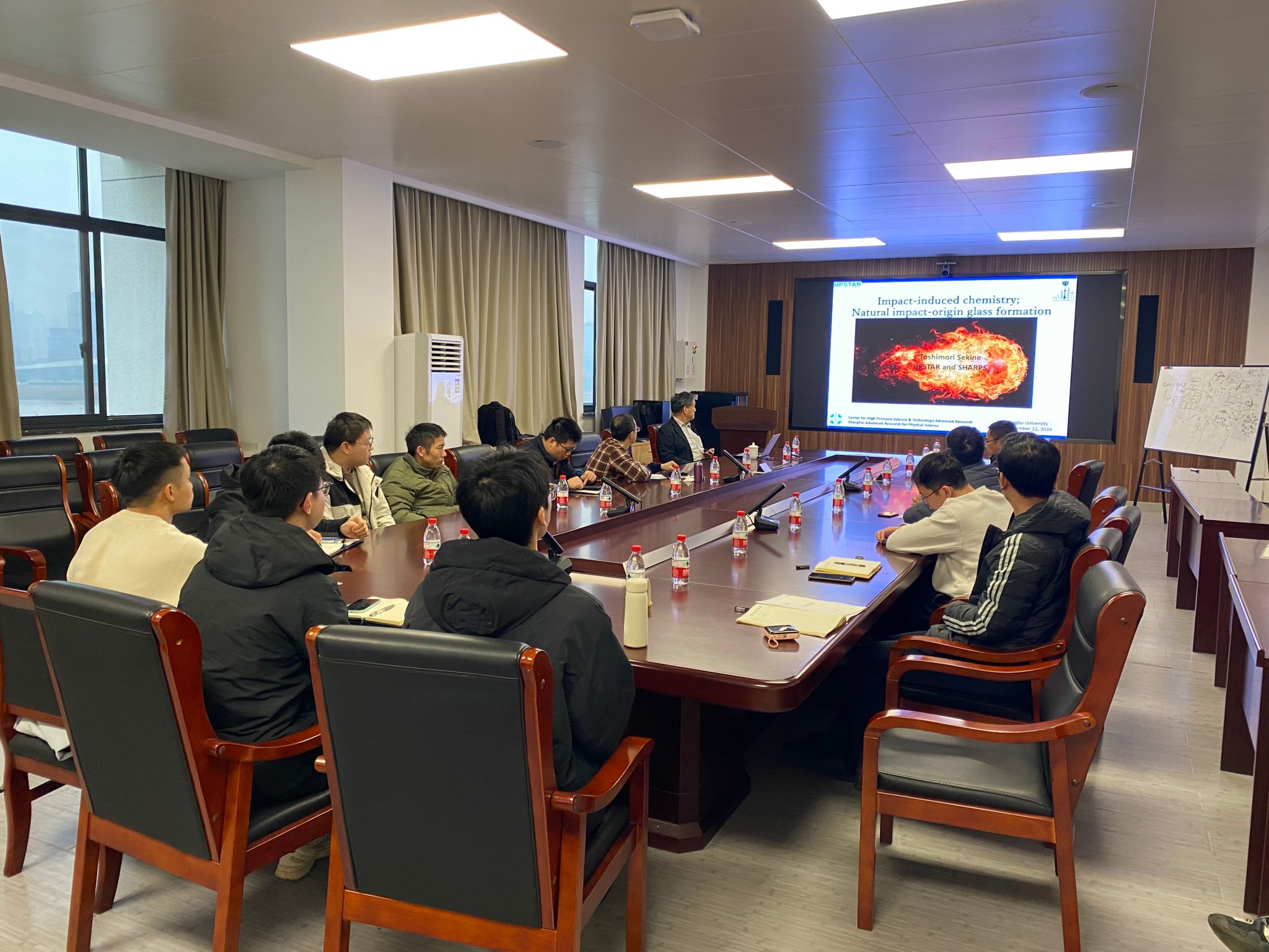 2024年12月12日,北京高压科学研究中心Toshimori Sekine(关根利守)教授应邀来实验室交流,并在宗瑞楼5楼会议室作了题为“Impact-induced chemistry:Natural impact-origin glass formation”的前沿学术报告。报告由王永刚教授主持,学院20余名师生参加此次报告。